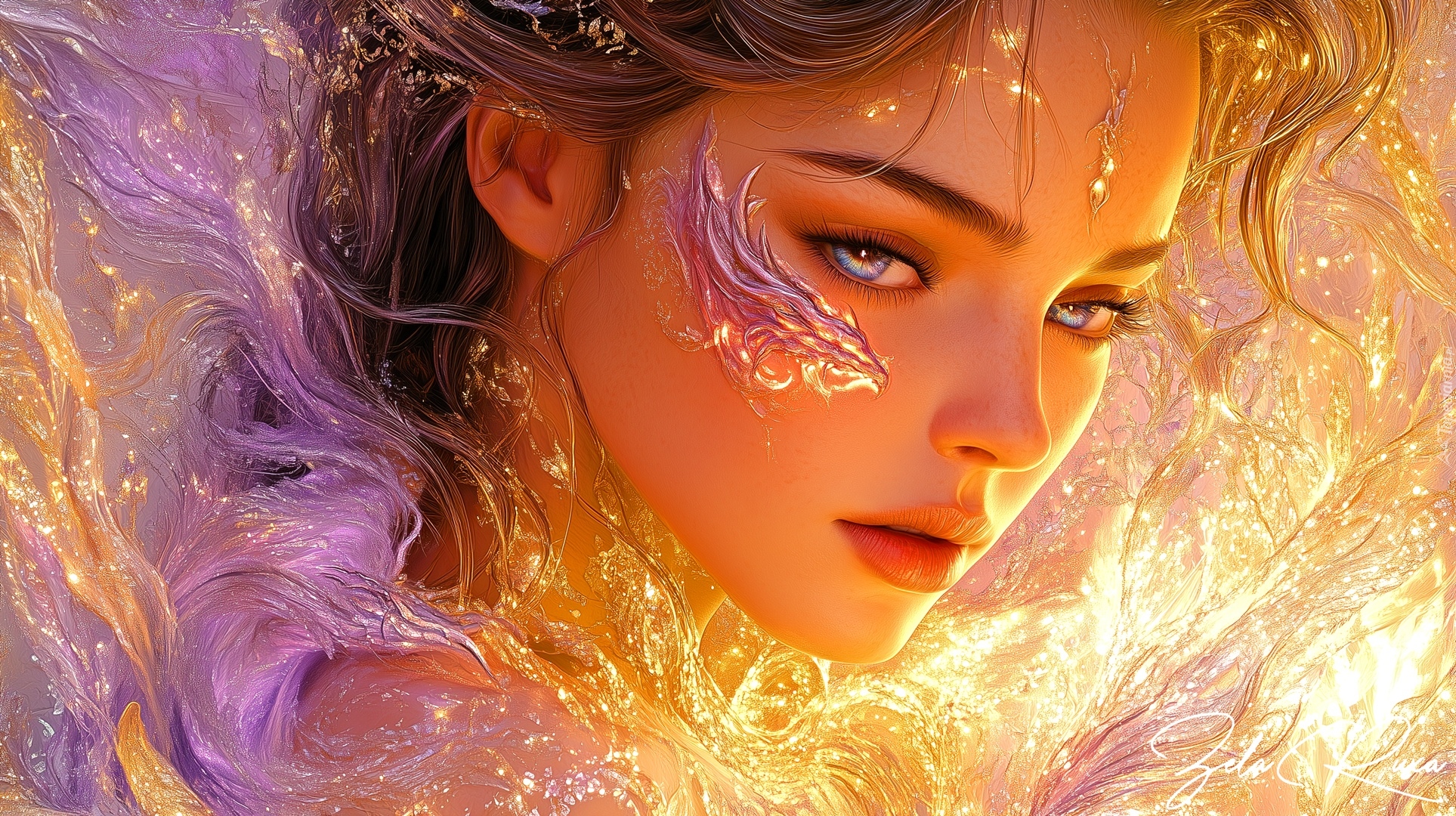 Edytor tapety: Rozświetlona twarz zamyślonej kobiety
