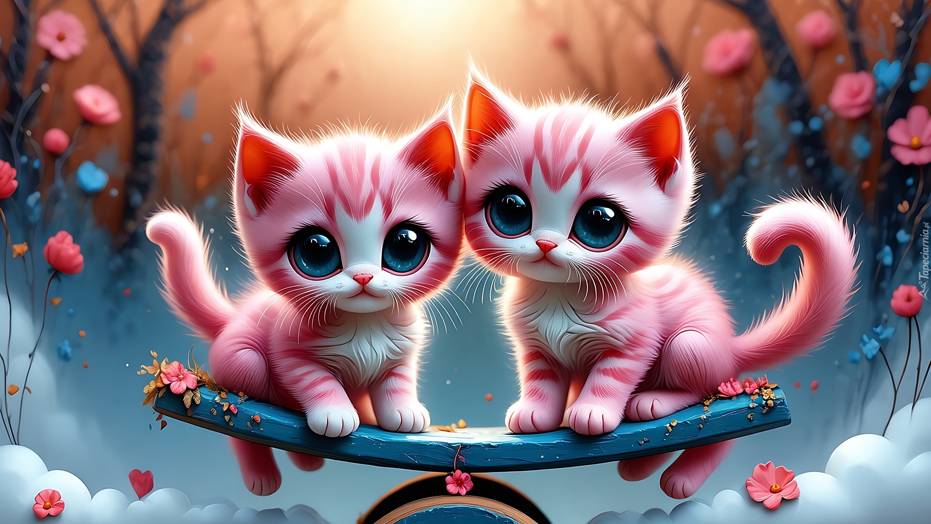 Edytor tapety: Grafika z dwoma różowymi kotami na desce