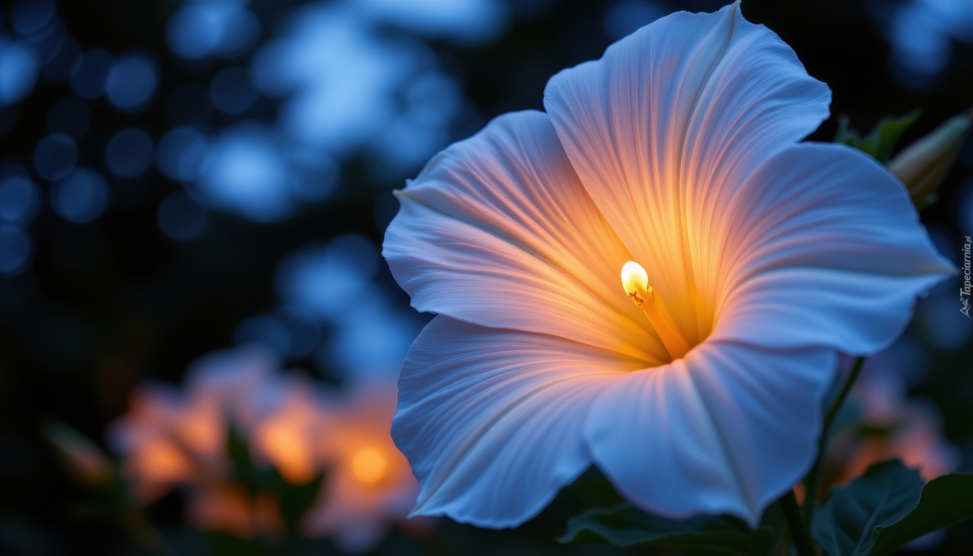 Edytor tapety: Rozświetlony biały kwiat na ciemnym tle