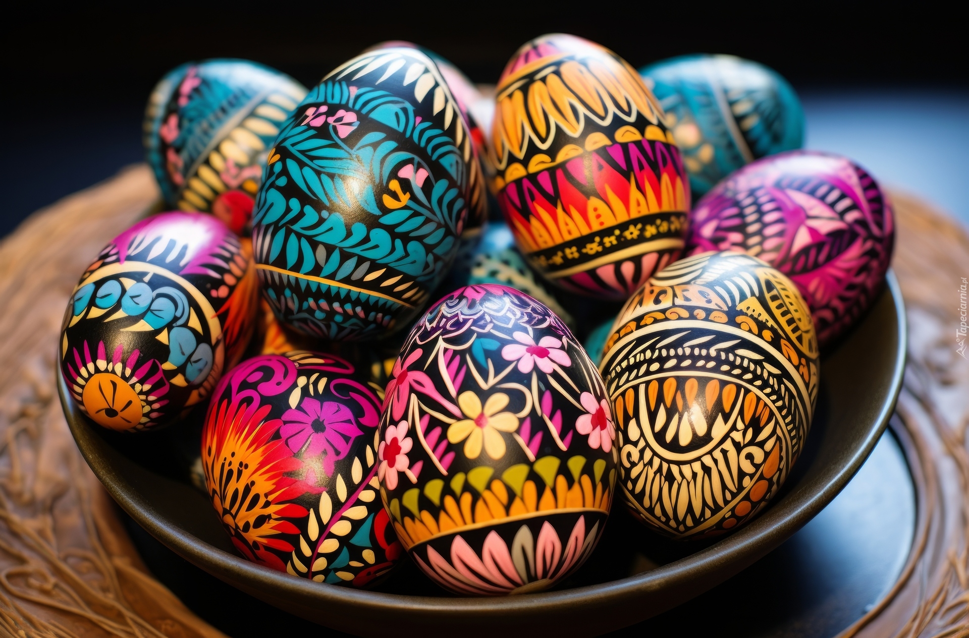 Edytor tapety: Miseczka z kolorowymi pisankami