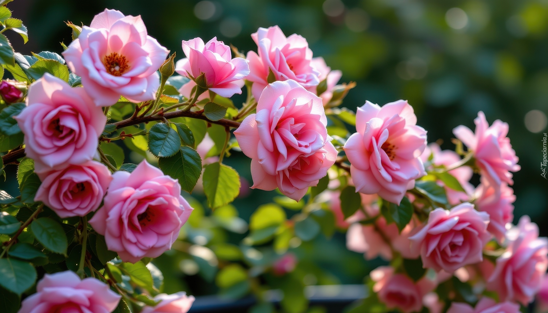 Edytor tapety: Gałązka z różowymi różami i listkami