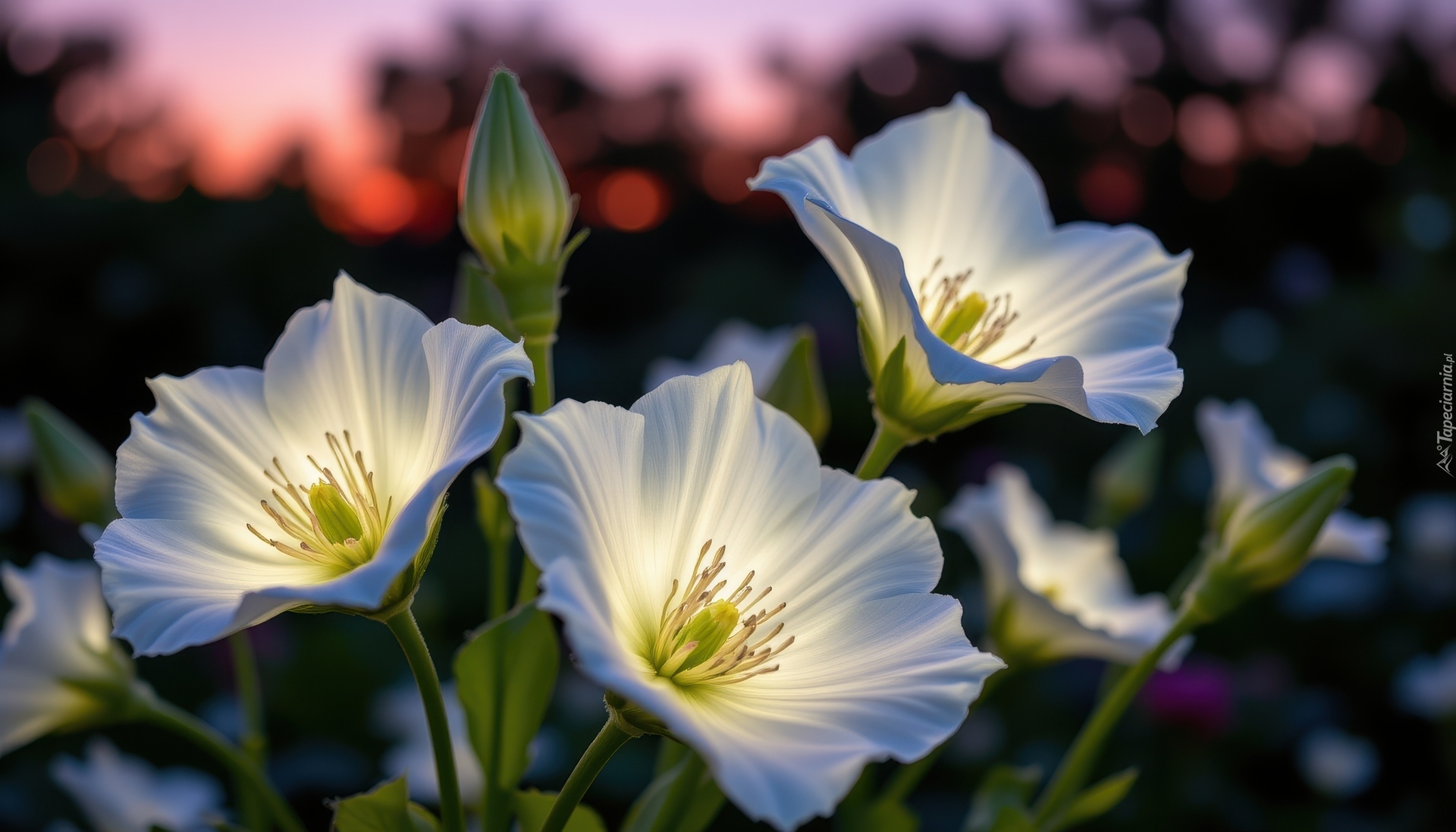 Edytor tapety: Trzy białe rozświetlone kwiaty
