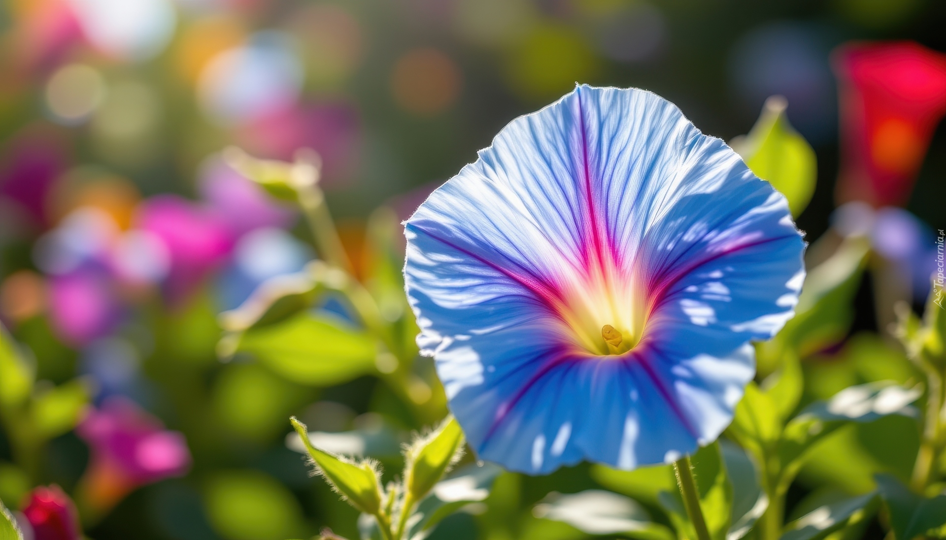 Edytor tapety: Rozświetlony niebiesko-różowy kwiat powoju