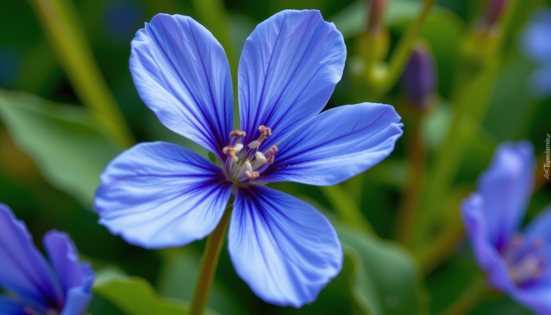 Edytor tapety: Niebieski pięciopłatkowy kwiat w zbliżeniu