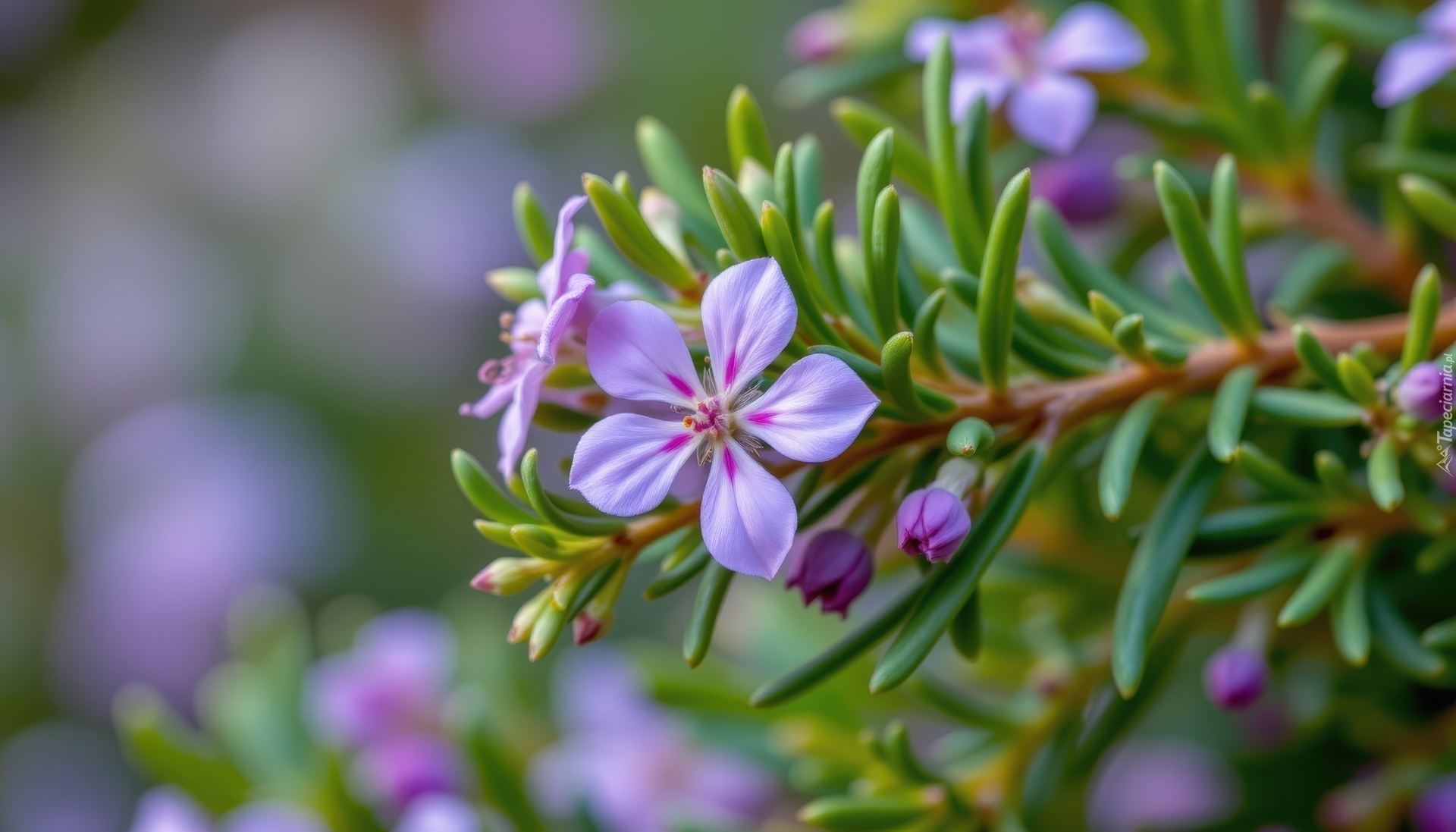 Edytor tapety: Drobne różowe kwiaty i pąki na gałązce