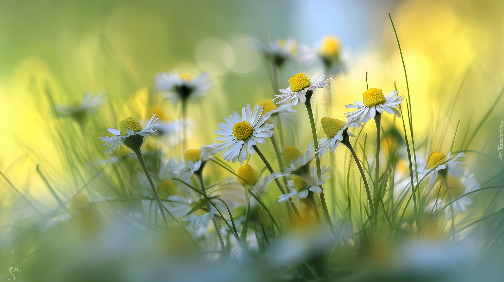 Edytor tapety: Stokrotki w trawie w grafice AI