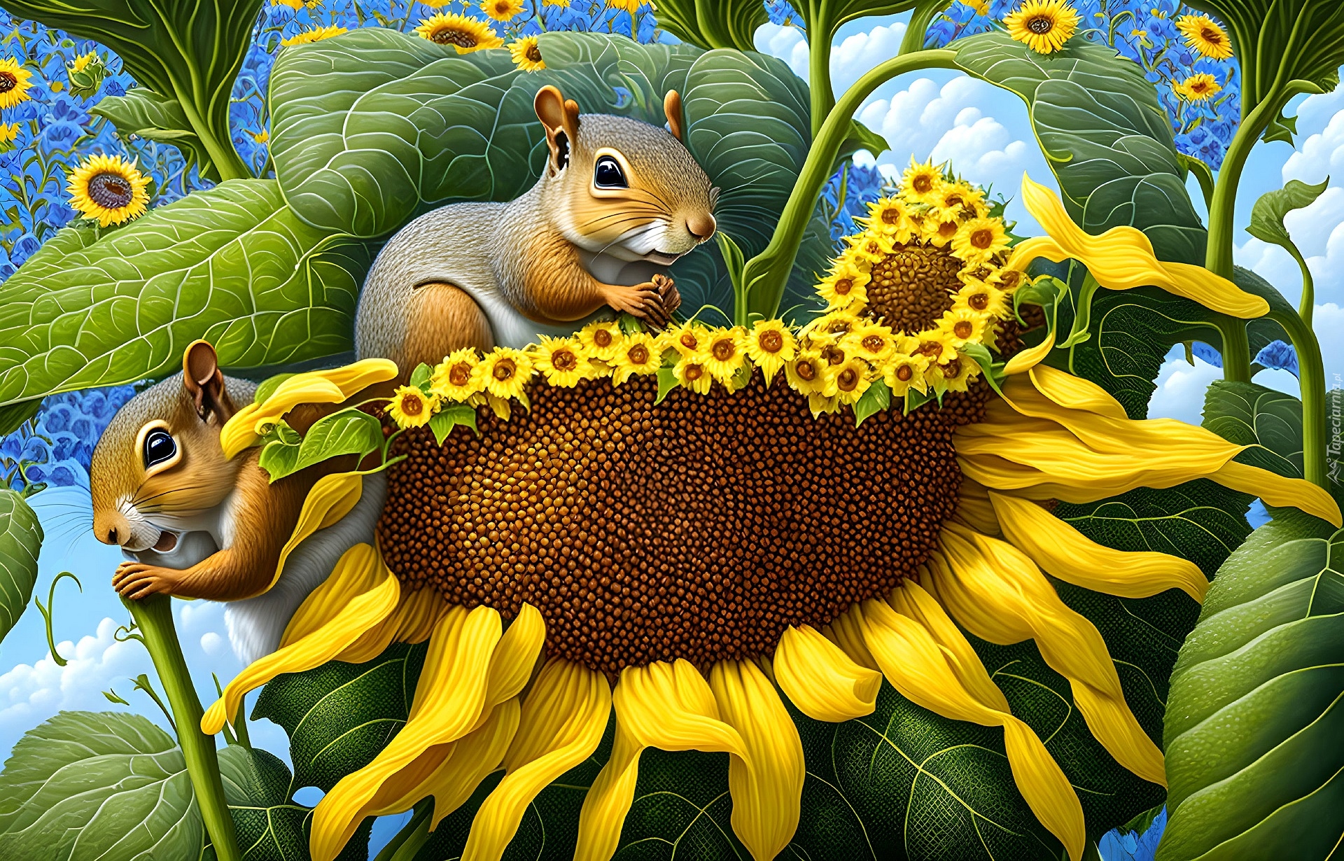 Edytor tapety: Dwie wiewiórki i słonecznik w grafice
