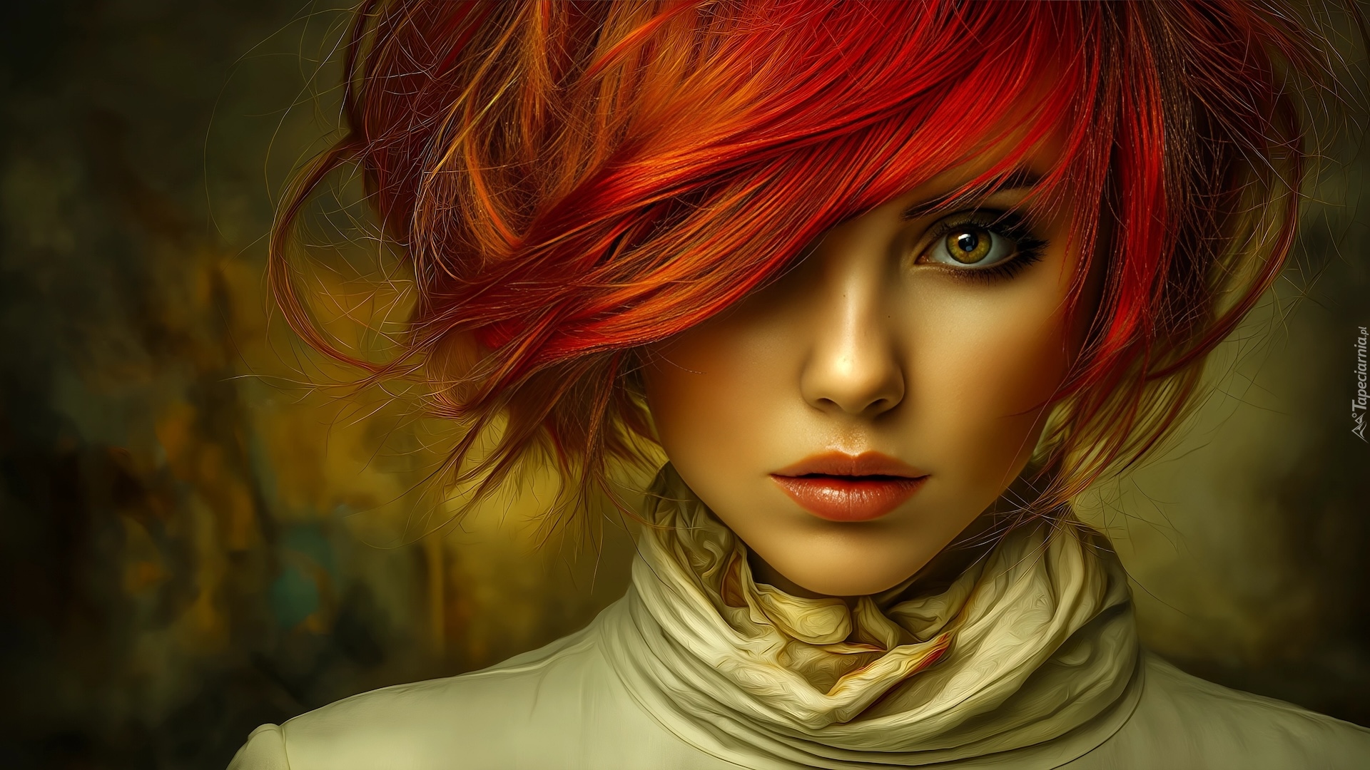Edytor tapety: Twarz kobiety z krótkimi czerwonymi włosami