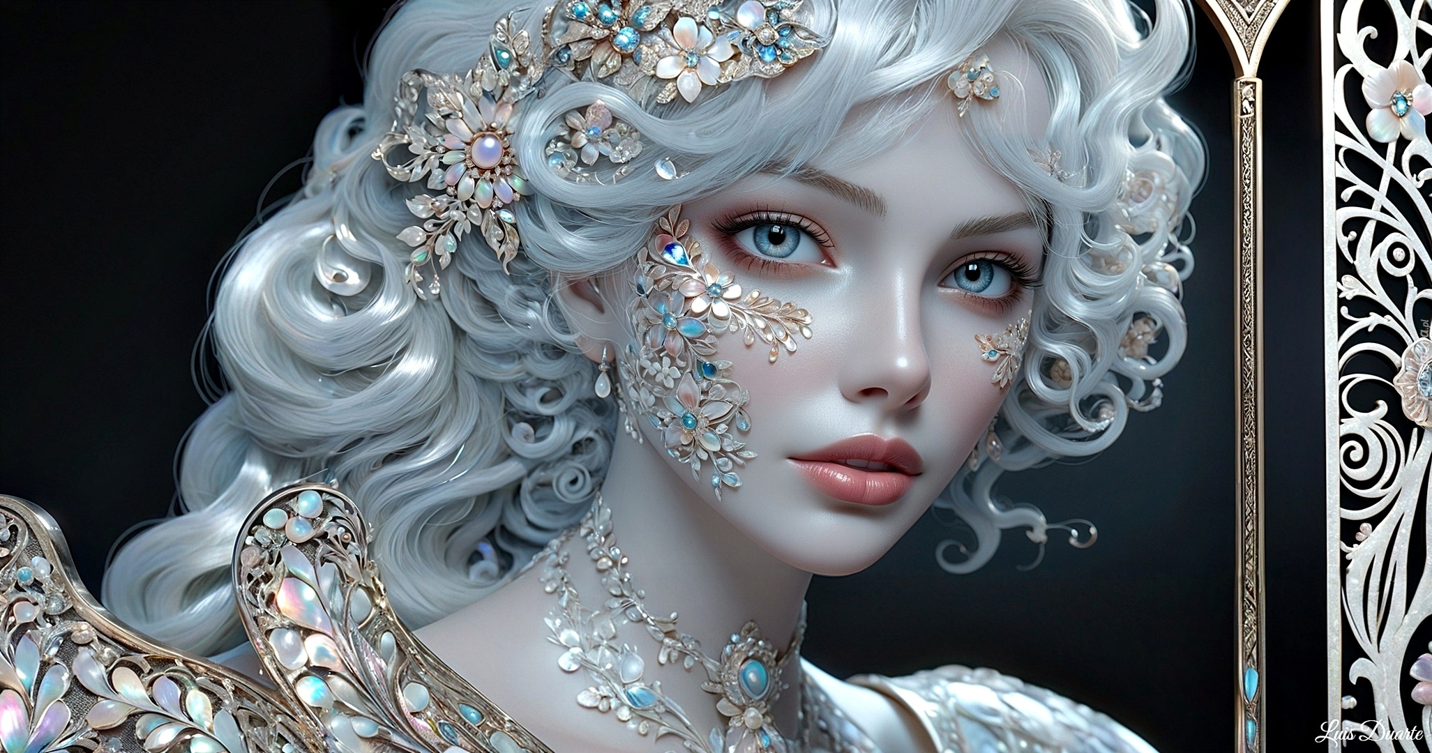 Edytor tapety: Dziewczyna z białymi włosami i biżuterią