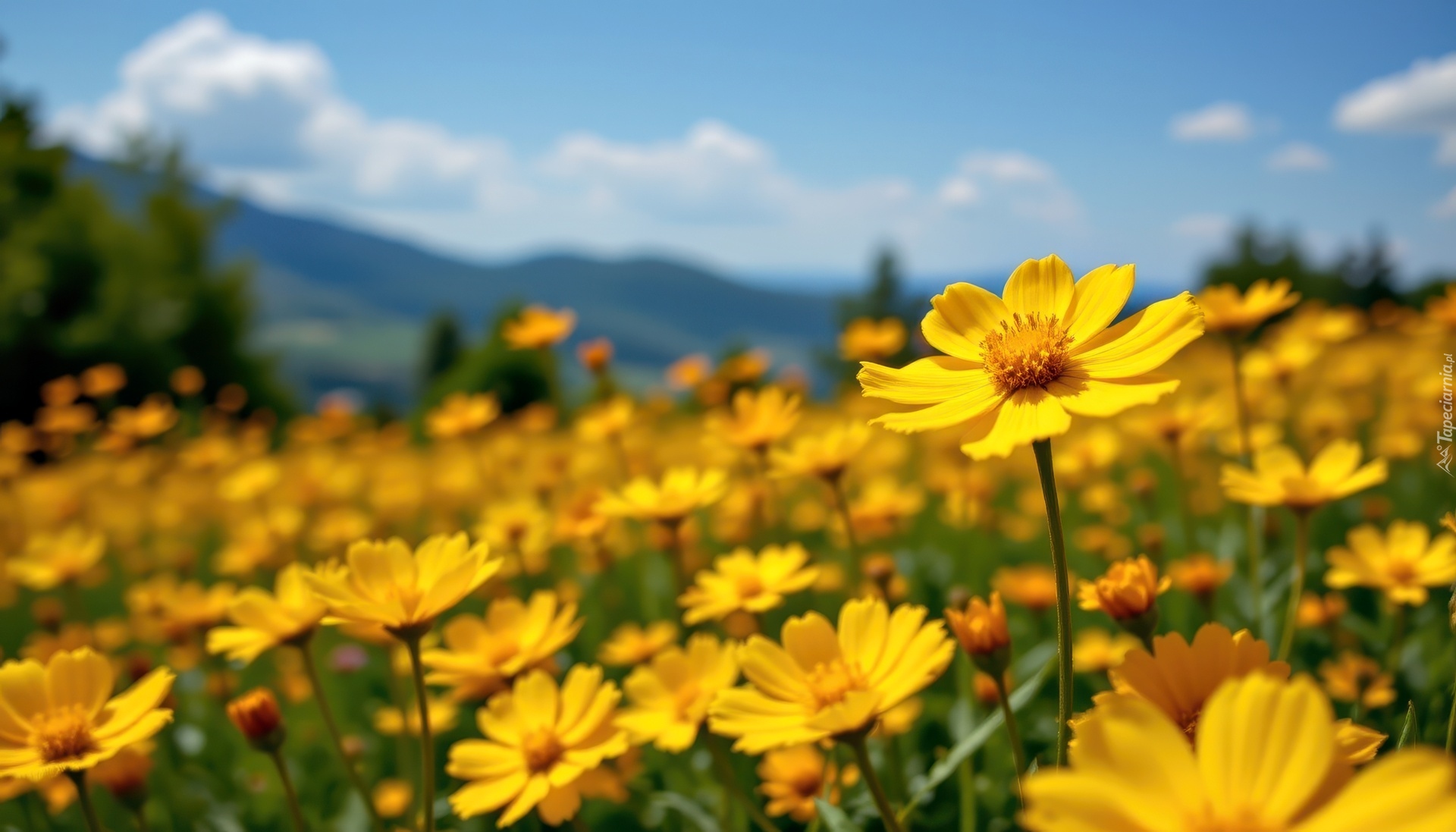 Edytor tapety: Rozkwitnięte żółte kwiaty z pąkami na łące