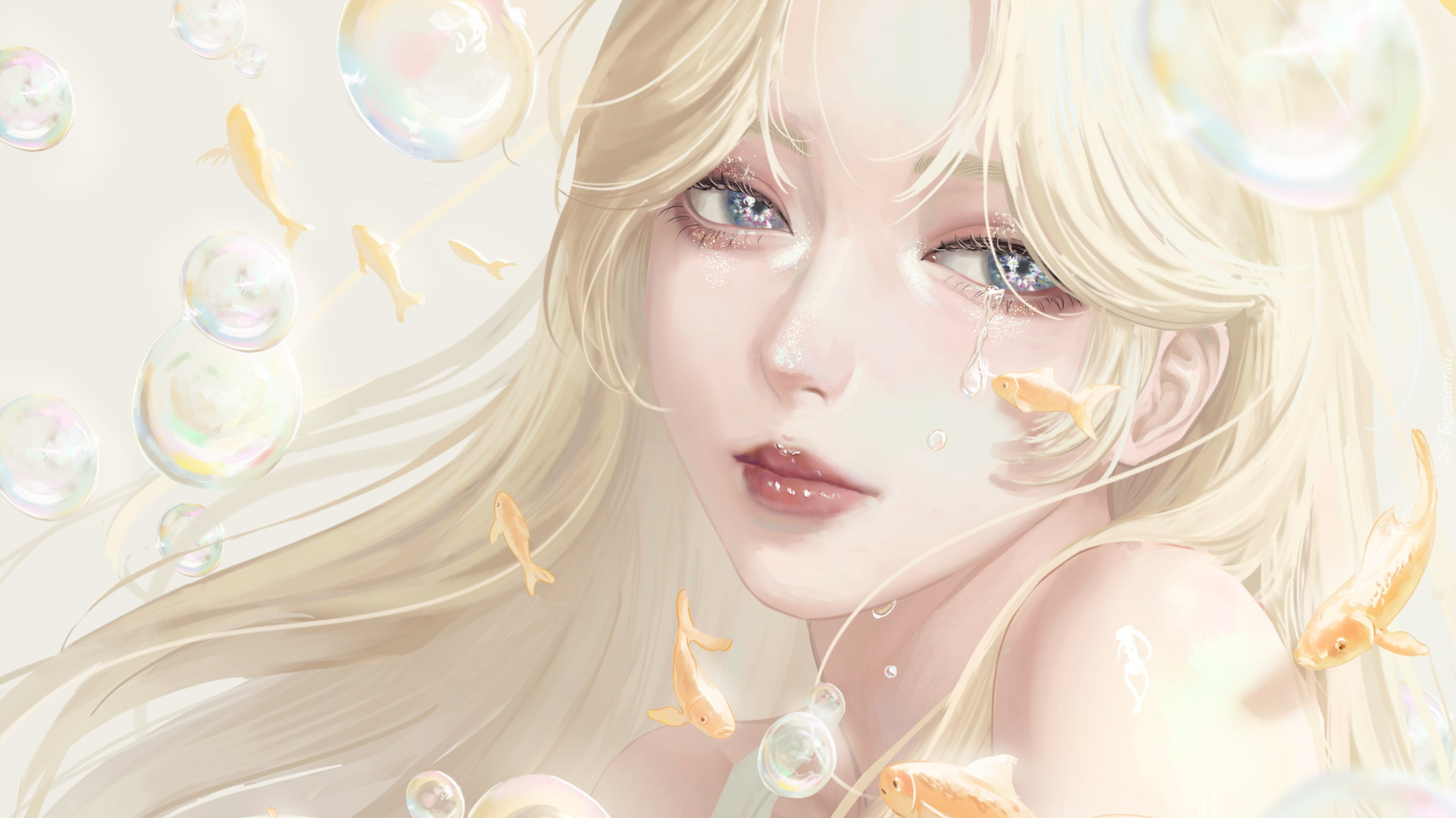 Edytor tapety: Twarz dziewczyny o blond włosach w grafice