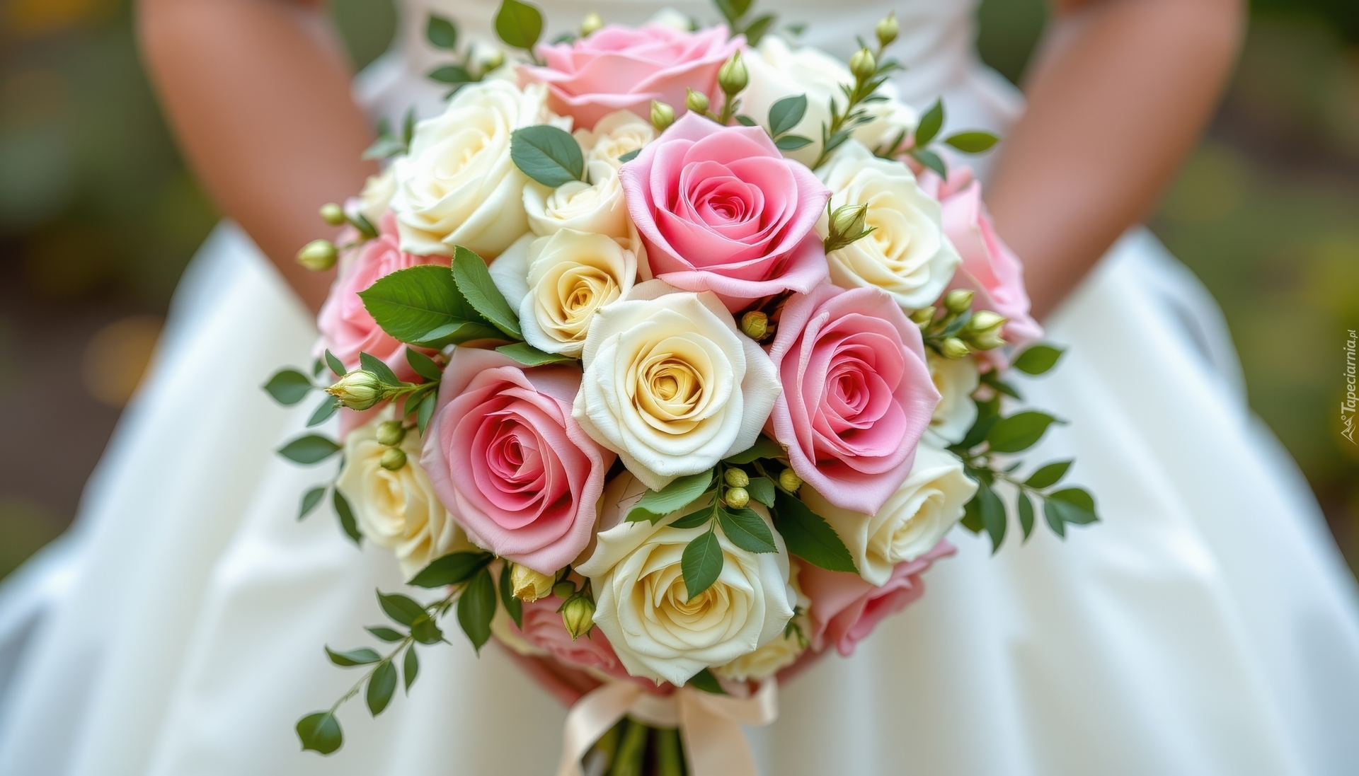 Edytor tapety: Bukiet ślubny z kremowych i różowych róż