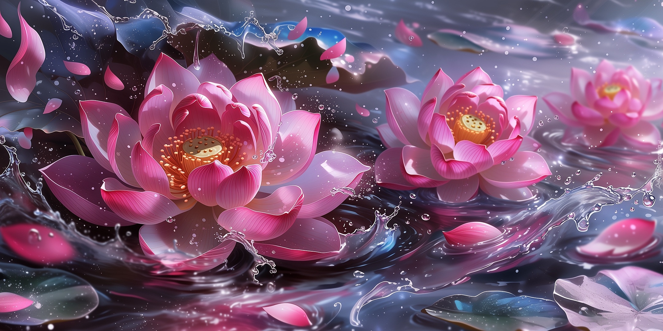 Edytor tapety: Różowe kwiaty lotosu w wodzie