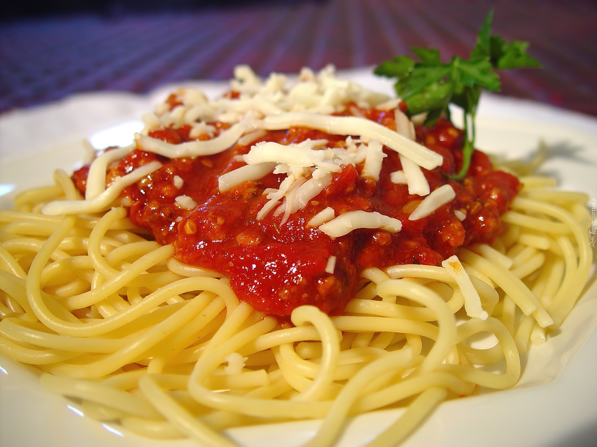 Edytor tapety: Spaghetti, Makaron, Sos, Ser