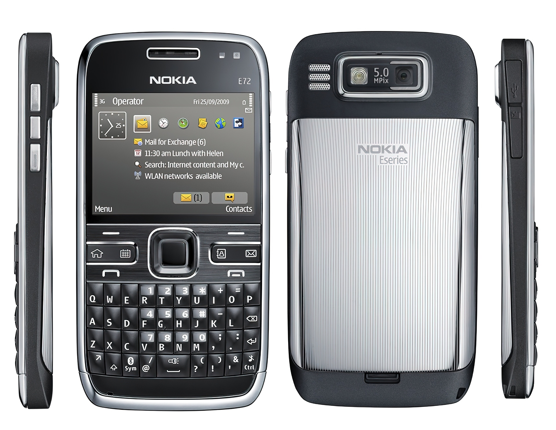 Edytor tapety: Nokia E72, Czarna, Srebrna, Przód, Tył, Boki