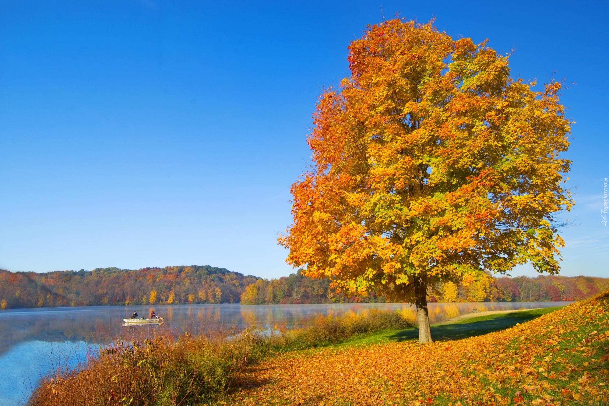 Edytor tapety: Jesień, Drzewo, Jezioro, Liście