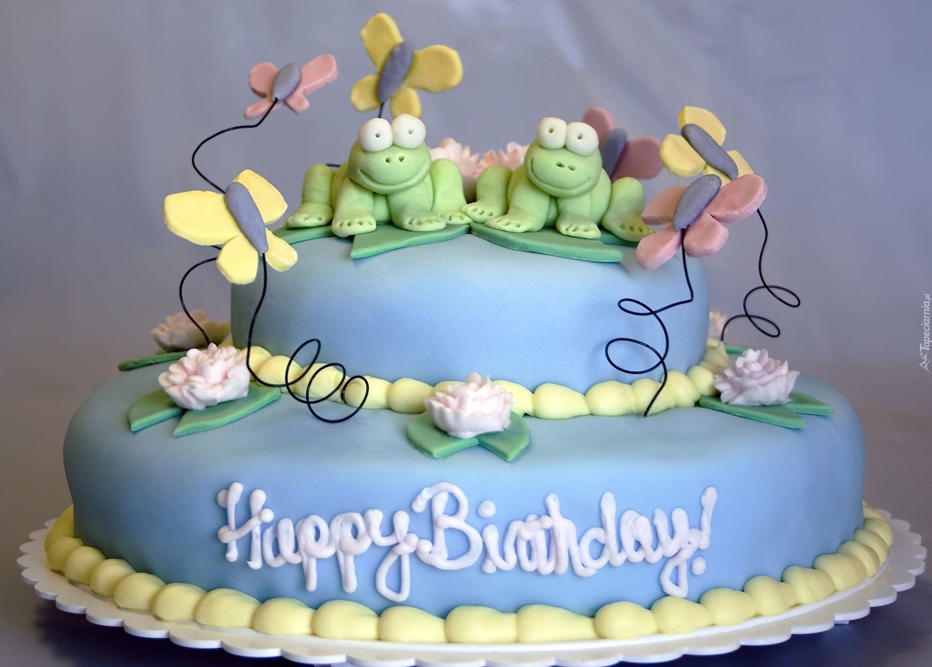 Edytor tapety: Niebieski, Tort, Żabki