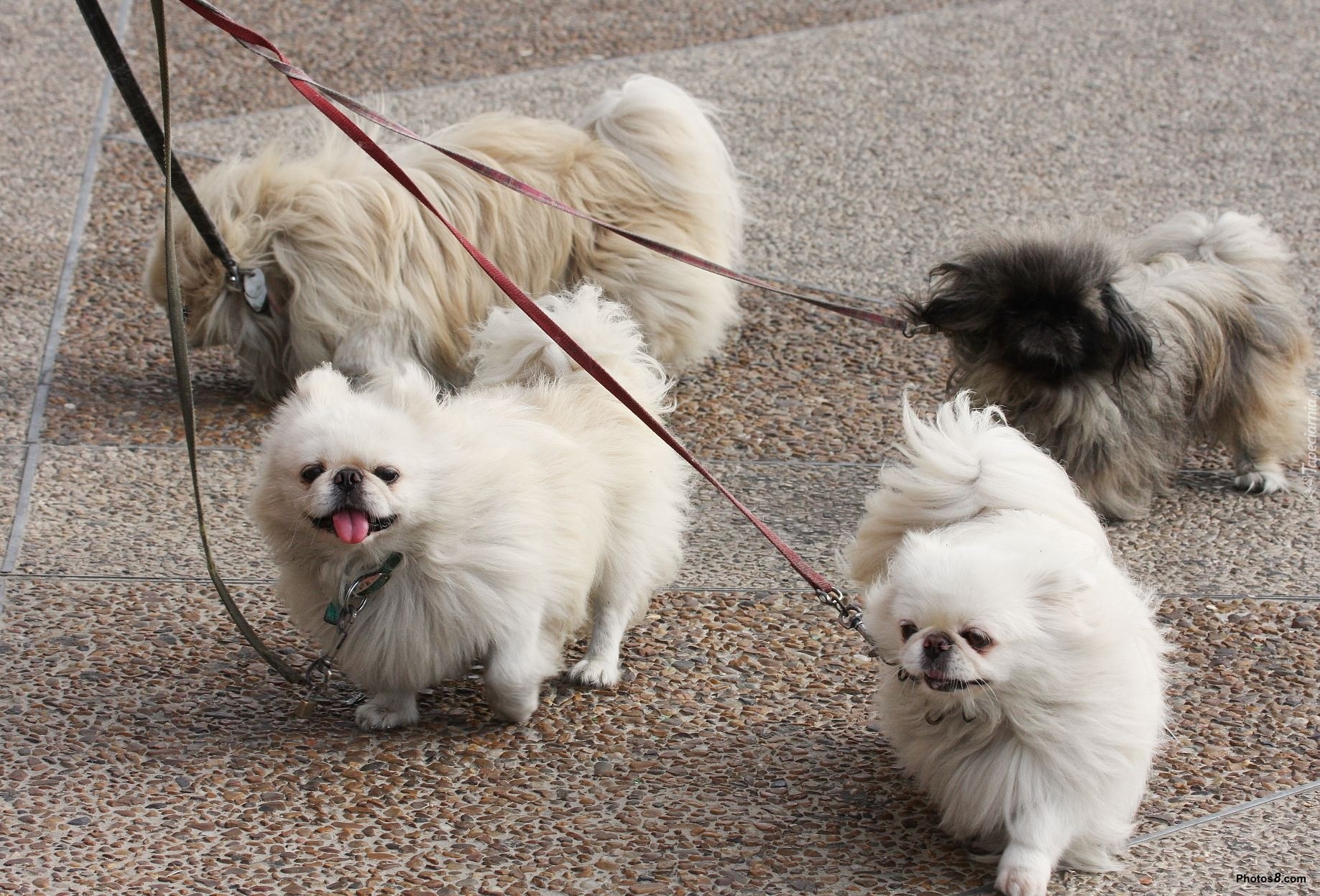 Edytor tapety: cztery, Pekińczyki, smycze