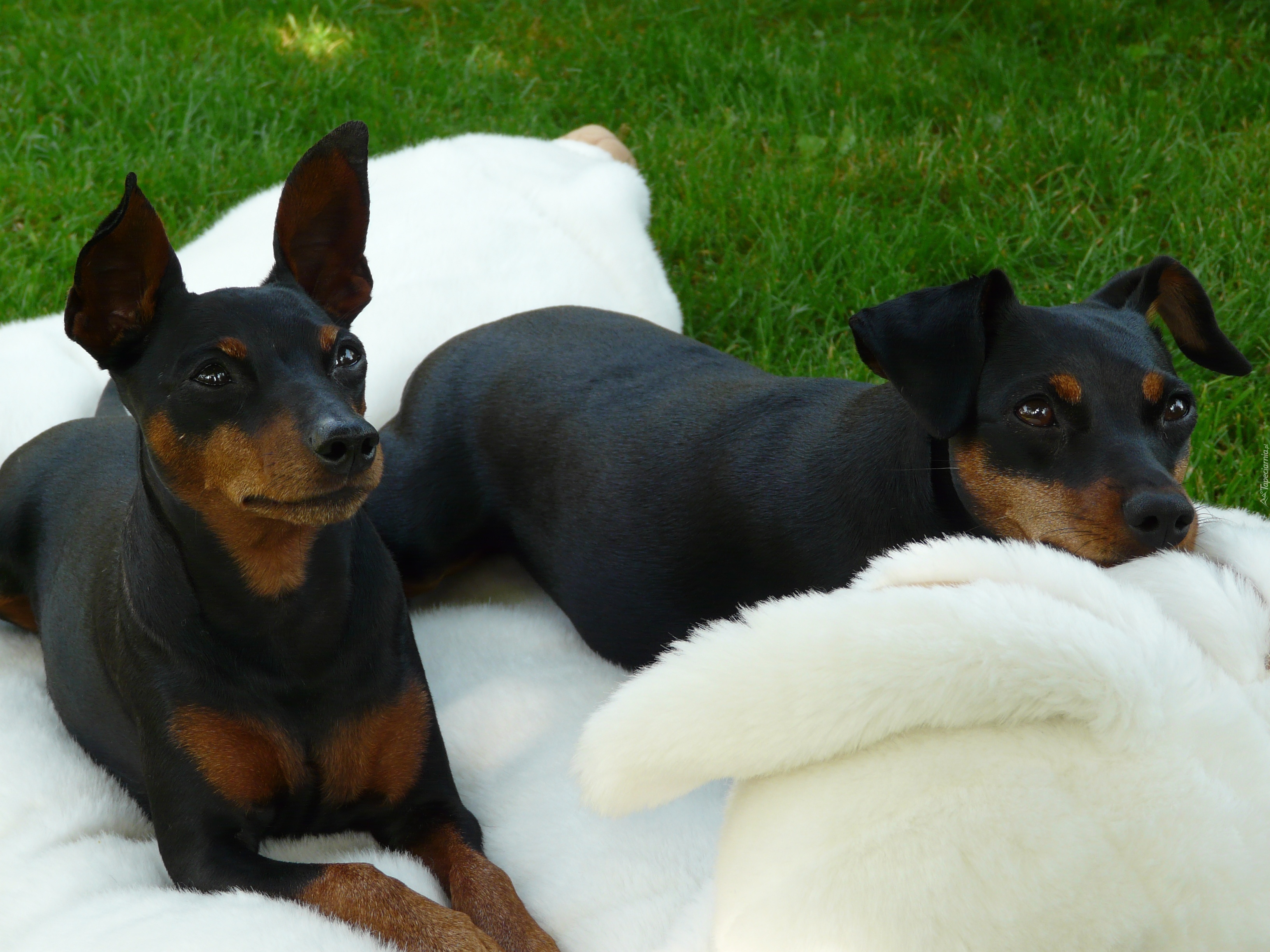 Edytor tapety: dwa, Pinczery miniaturowe, biały, koc