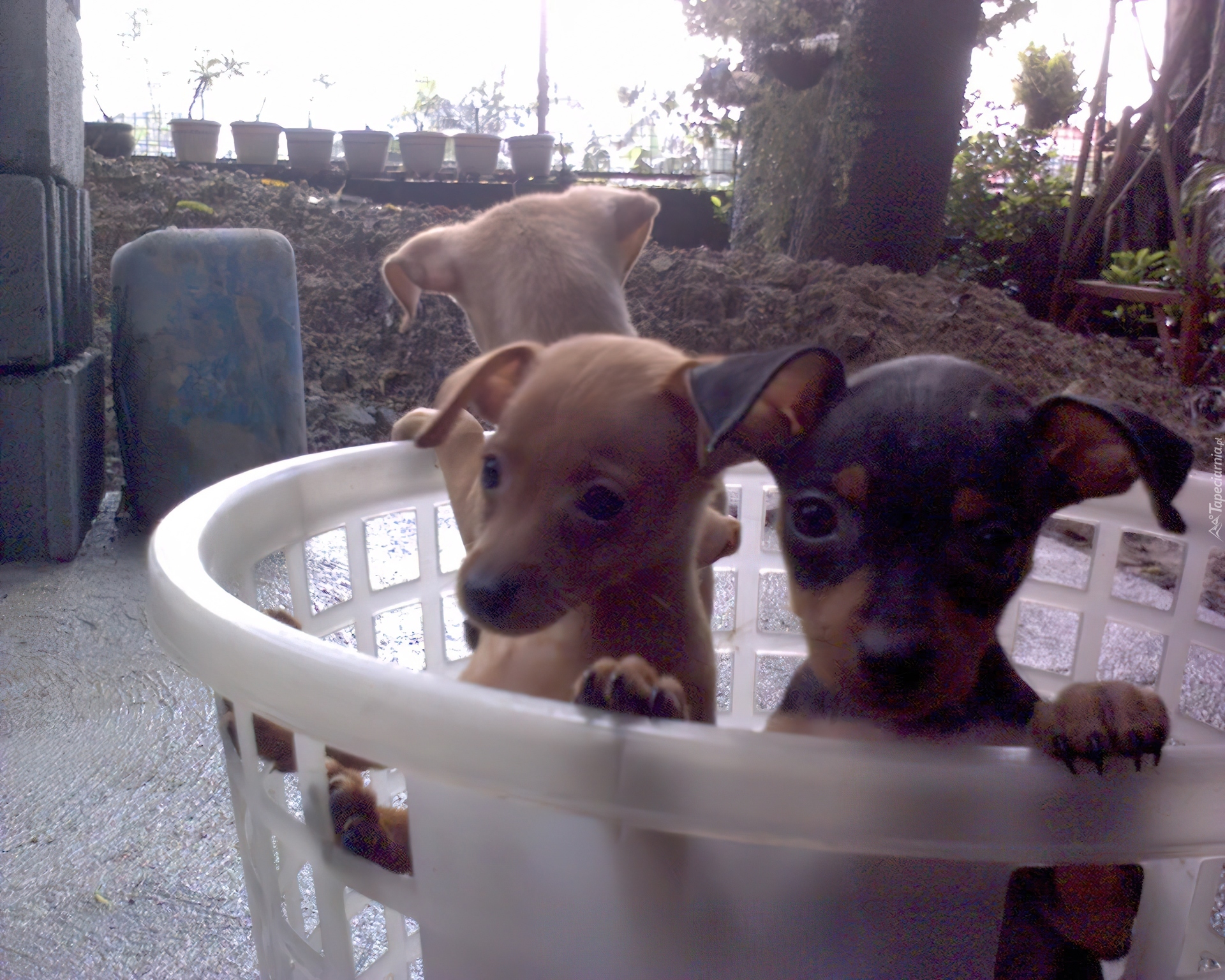 Edytor tapety: trzy, małe, pinczery miniaturowe