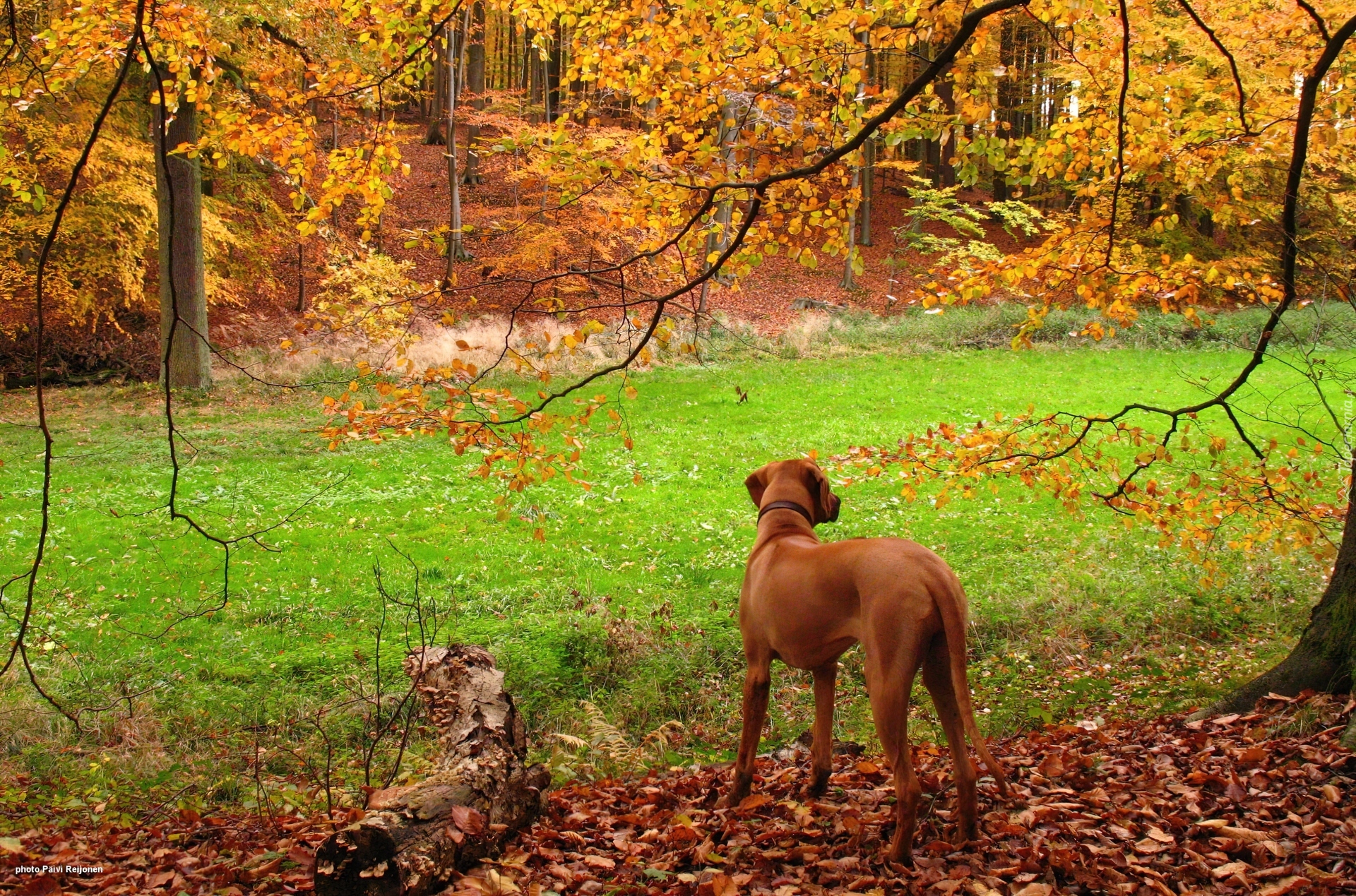 Edytor tapety: Rhodesian ridgeback, złota, jesień