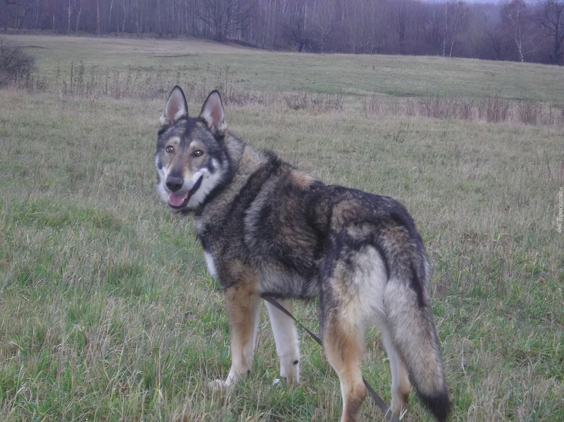 Edytor tapety: Saarlooswolfhond, łąka