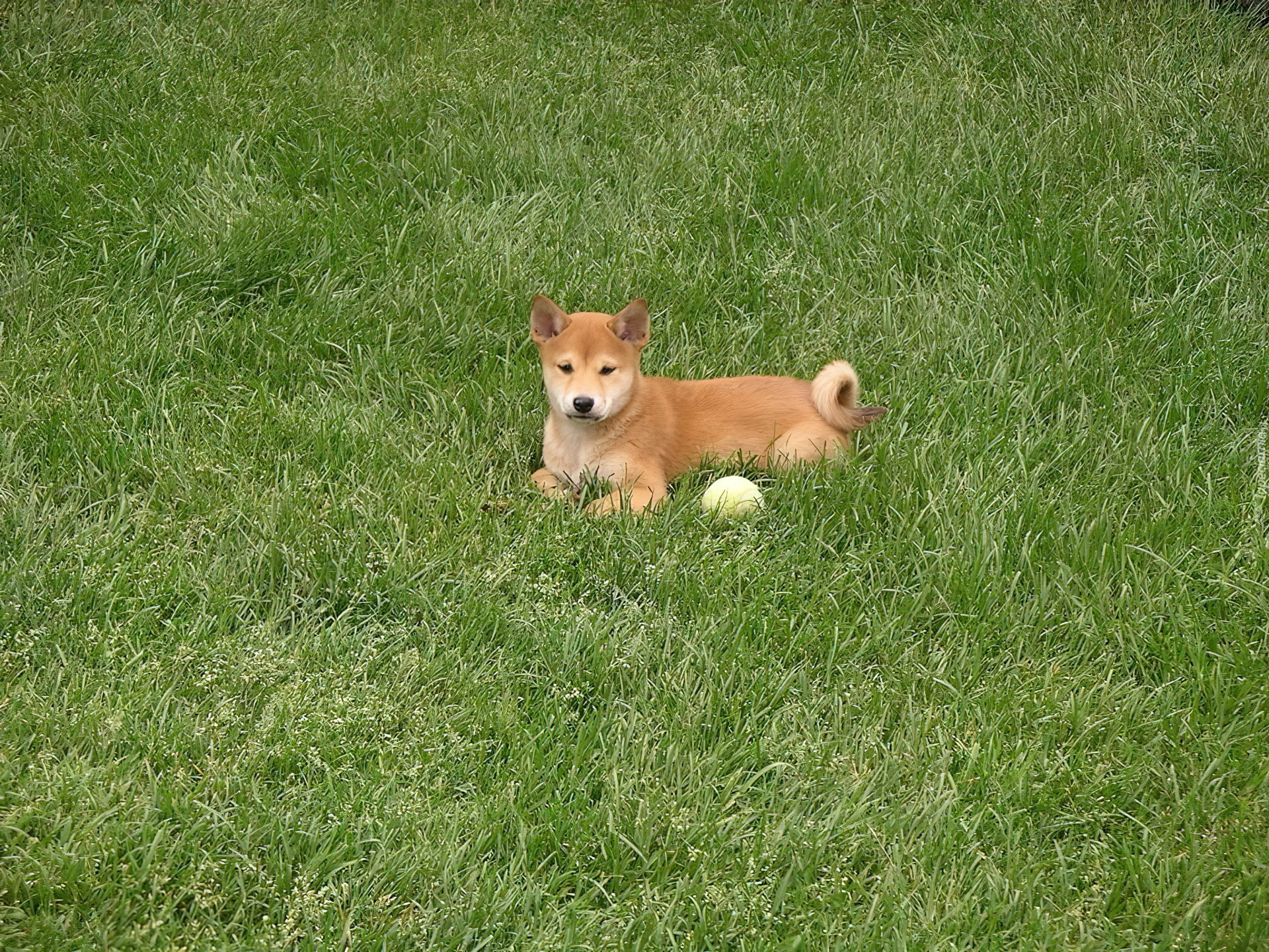 Edytor tapety: słodki, mały, Shiba inu, piłeczka