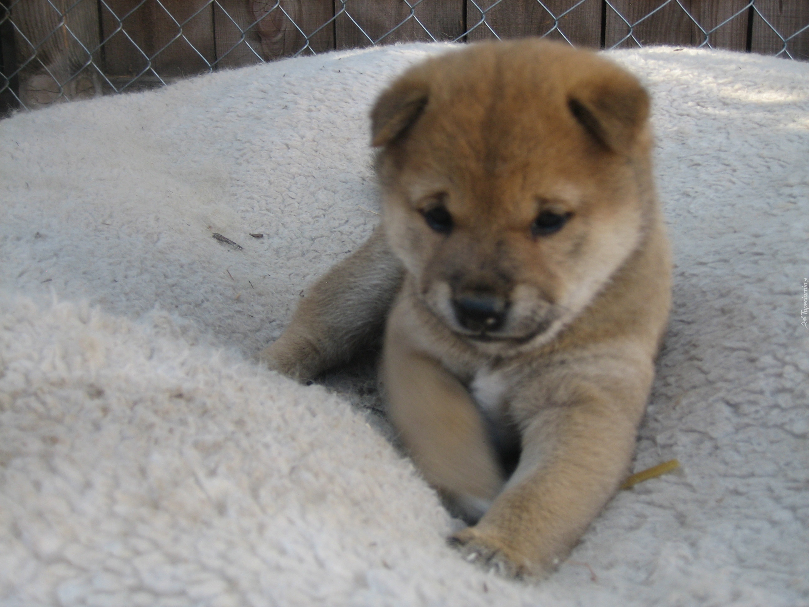Edytor tapety: słodki, szczeniak, Shiba inu, płot