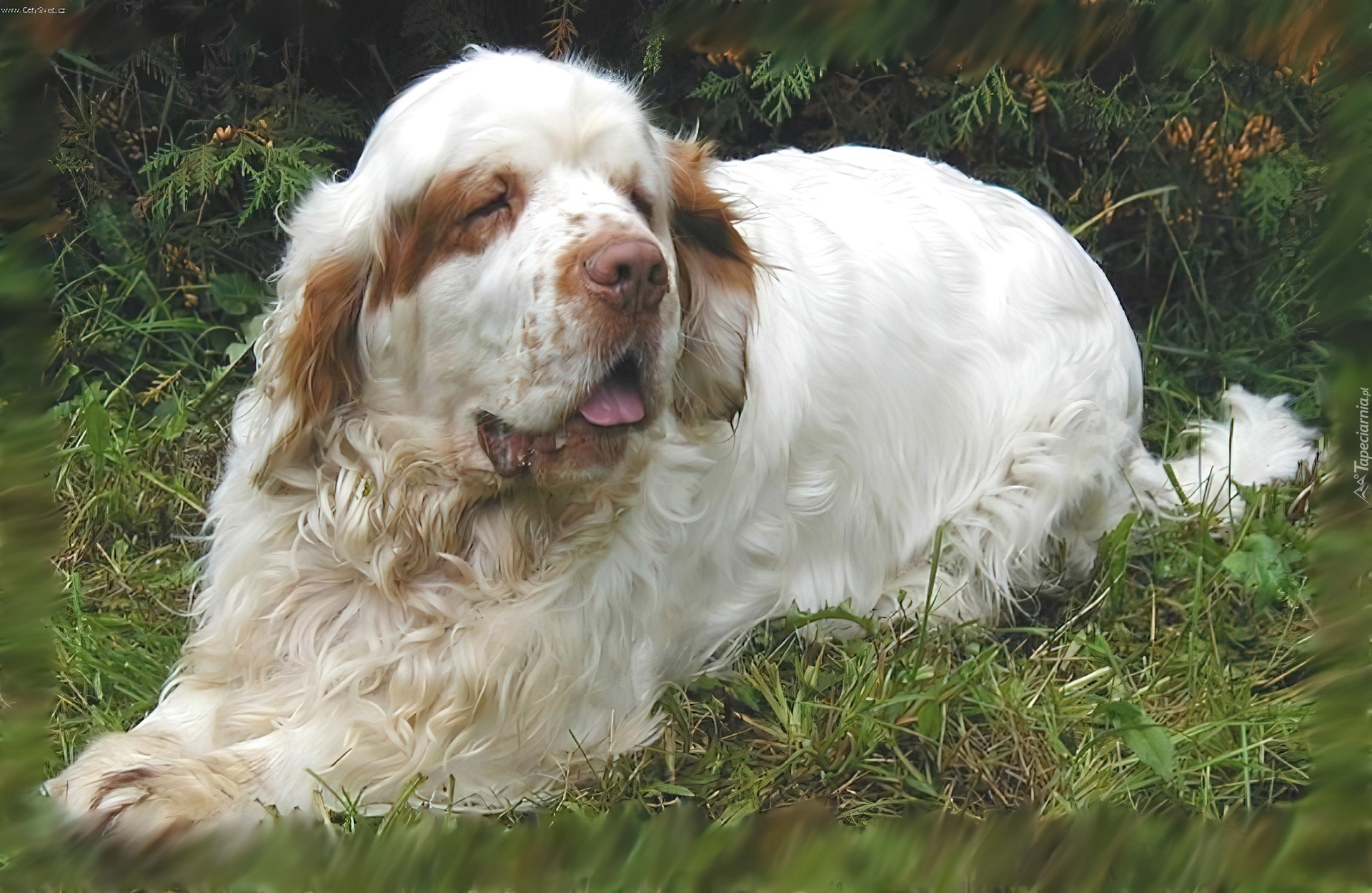 Edytor tapety: dorosły, Clumber spaniel, trawa