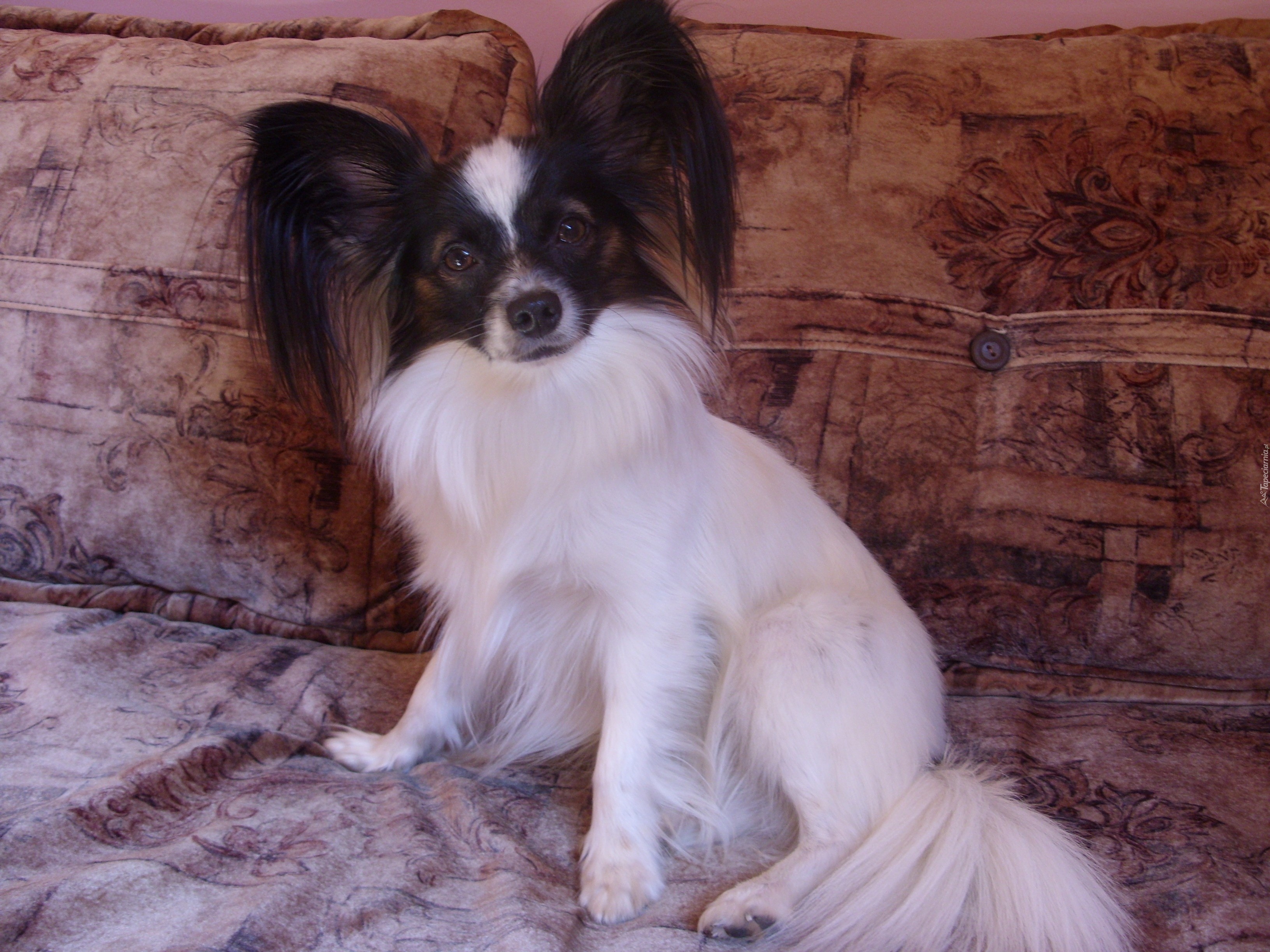 Edytor tapety: stojące, uszy, Spaniel kontynentalny miniaturowy Papillon, łóżko