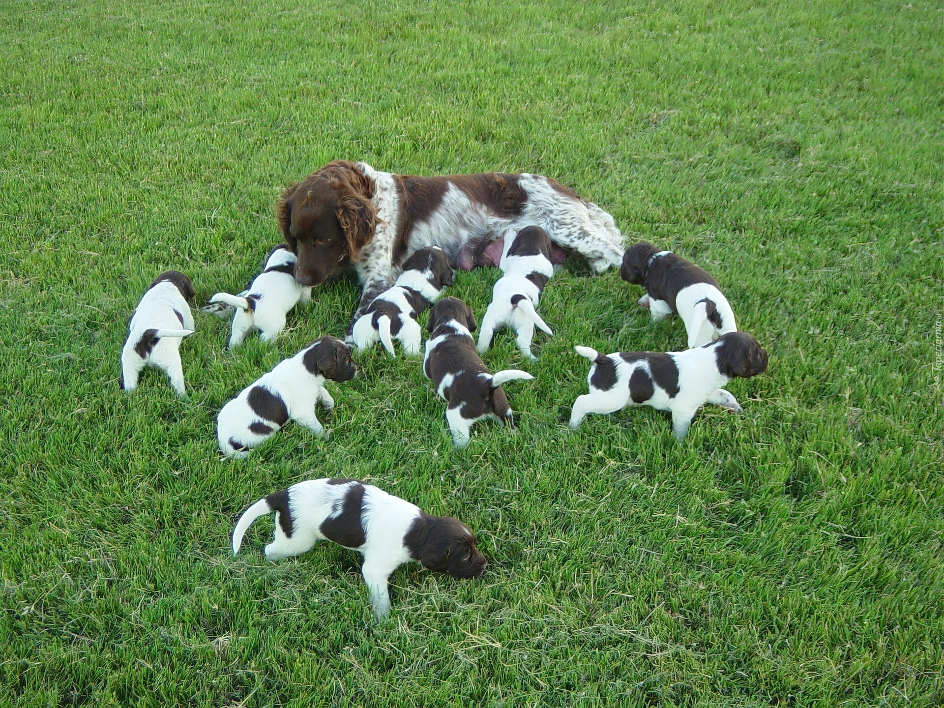 Edytor tapety: suka, szczeniaki, Wyżeł Munsterlander Mały, Mały Munsterlander