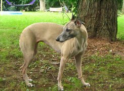 Edytor tapety: Whippet, drzewo, hamak