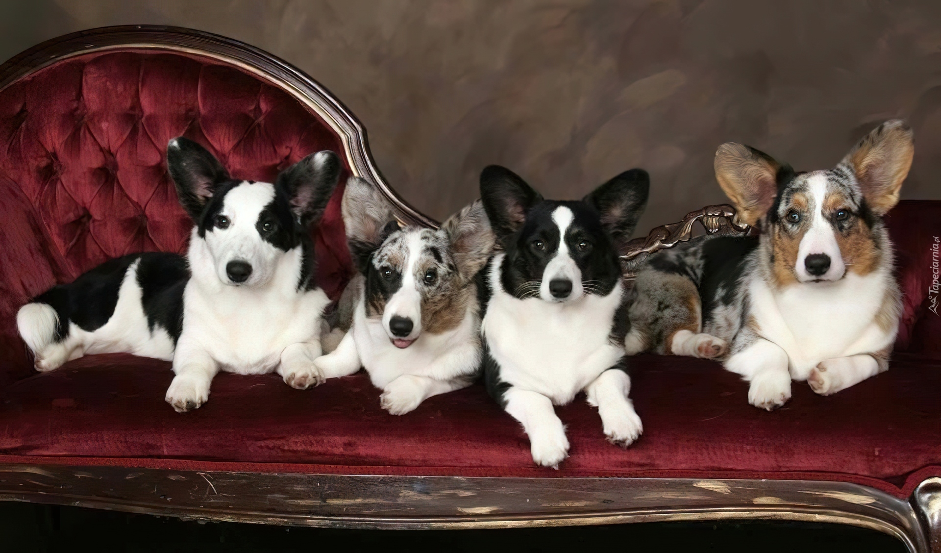 Edytor tapety: cztery, psy, Welsh corgi cardigan