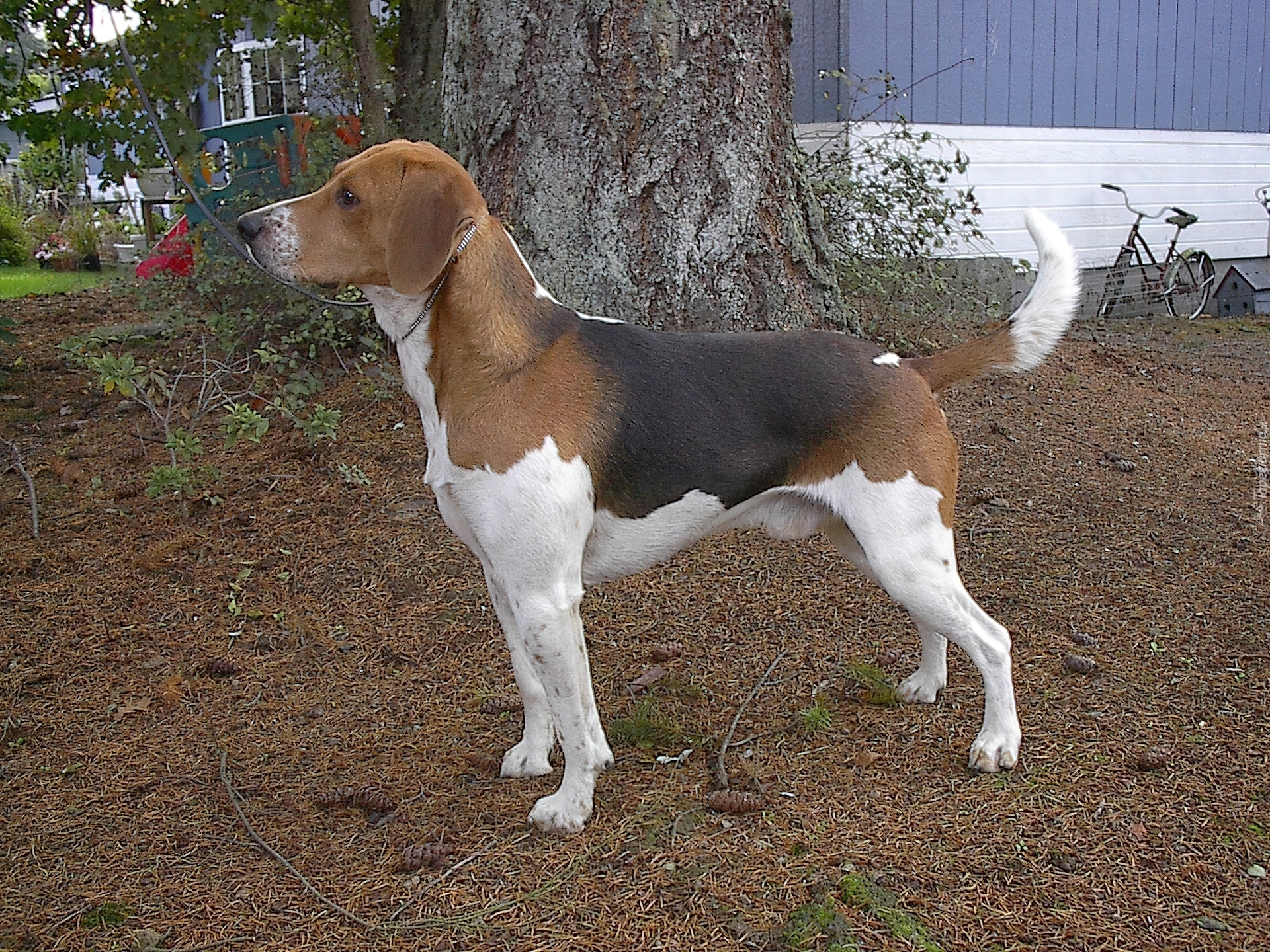 Edytor tapety: Beagle Harrier, drzewo, rower