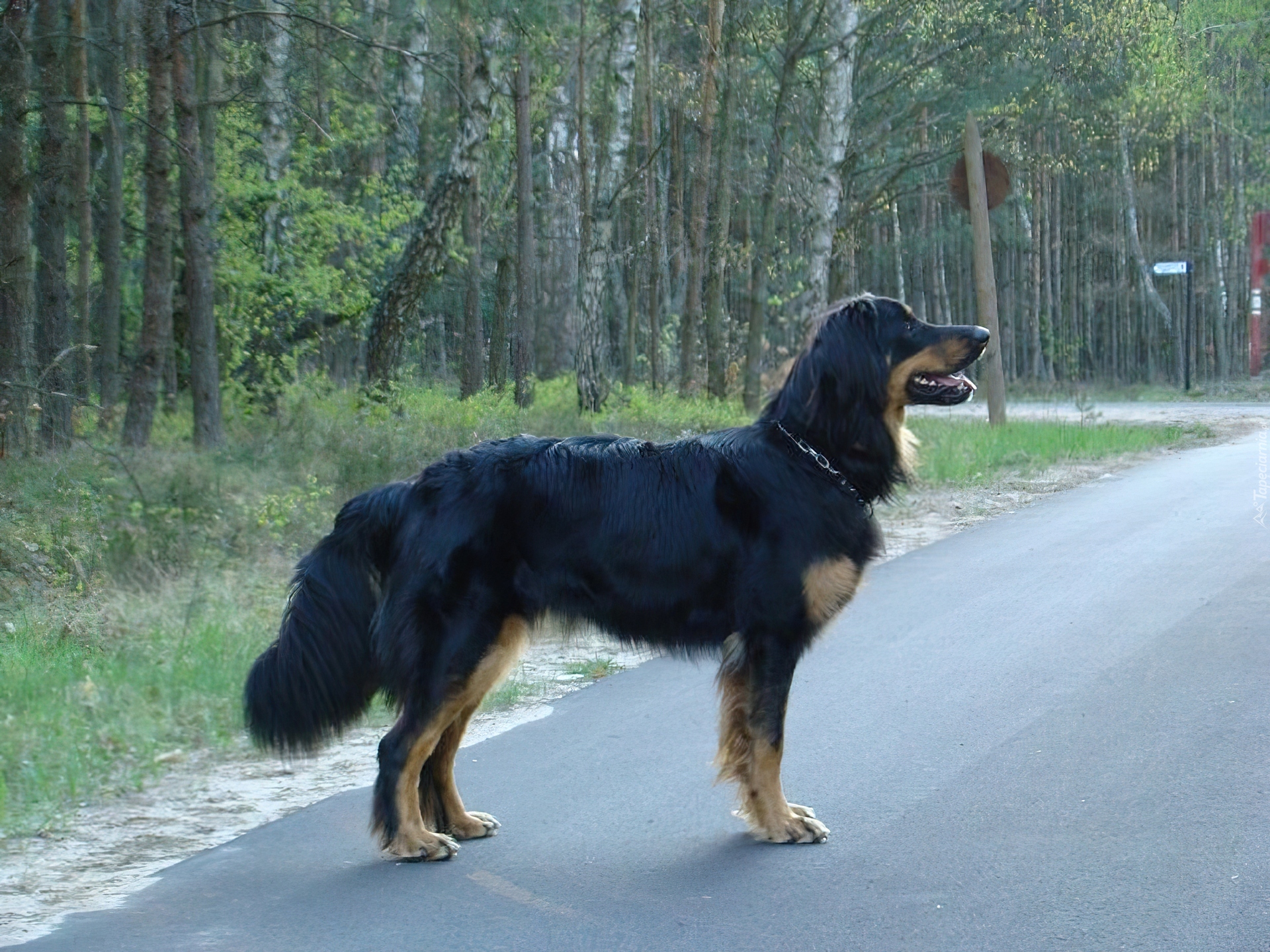Edytor tapety: Hovawart, las, droga