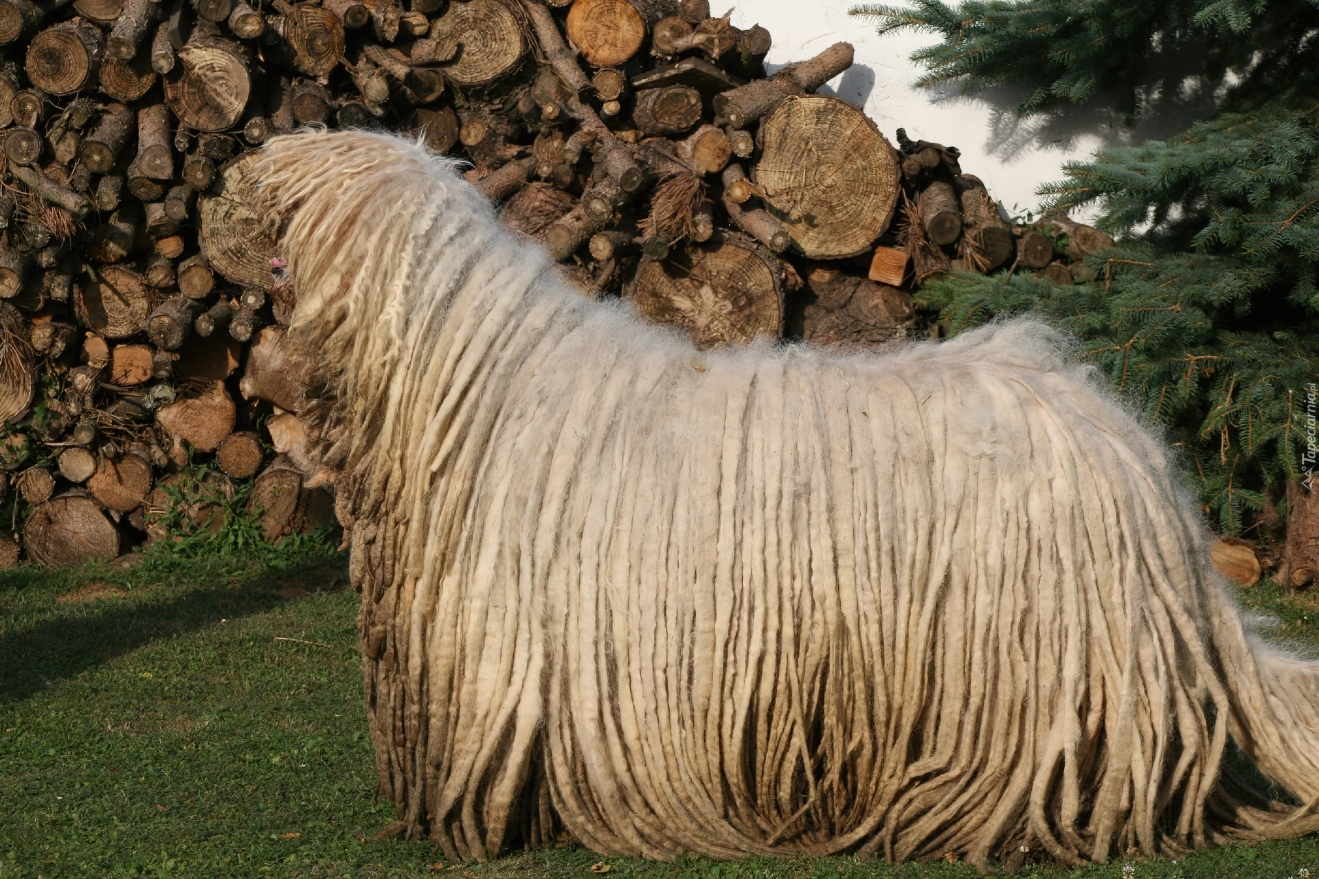Edytor tapety: Komondor, drewno