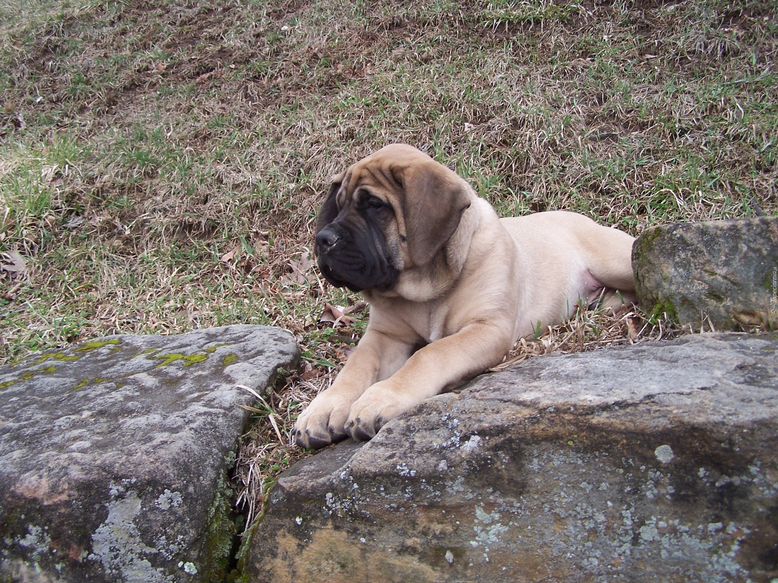 Edytor tapety: Mastif angielski, Mastiff, kamienie