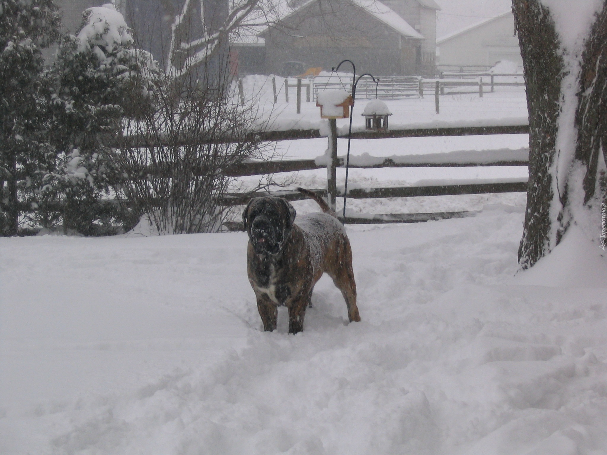 Edytor tapety: ośnieżony, Mastif angielski, Mastiff