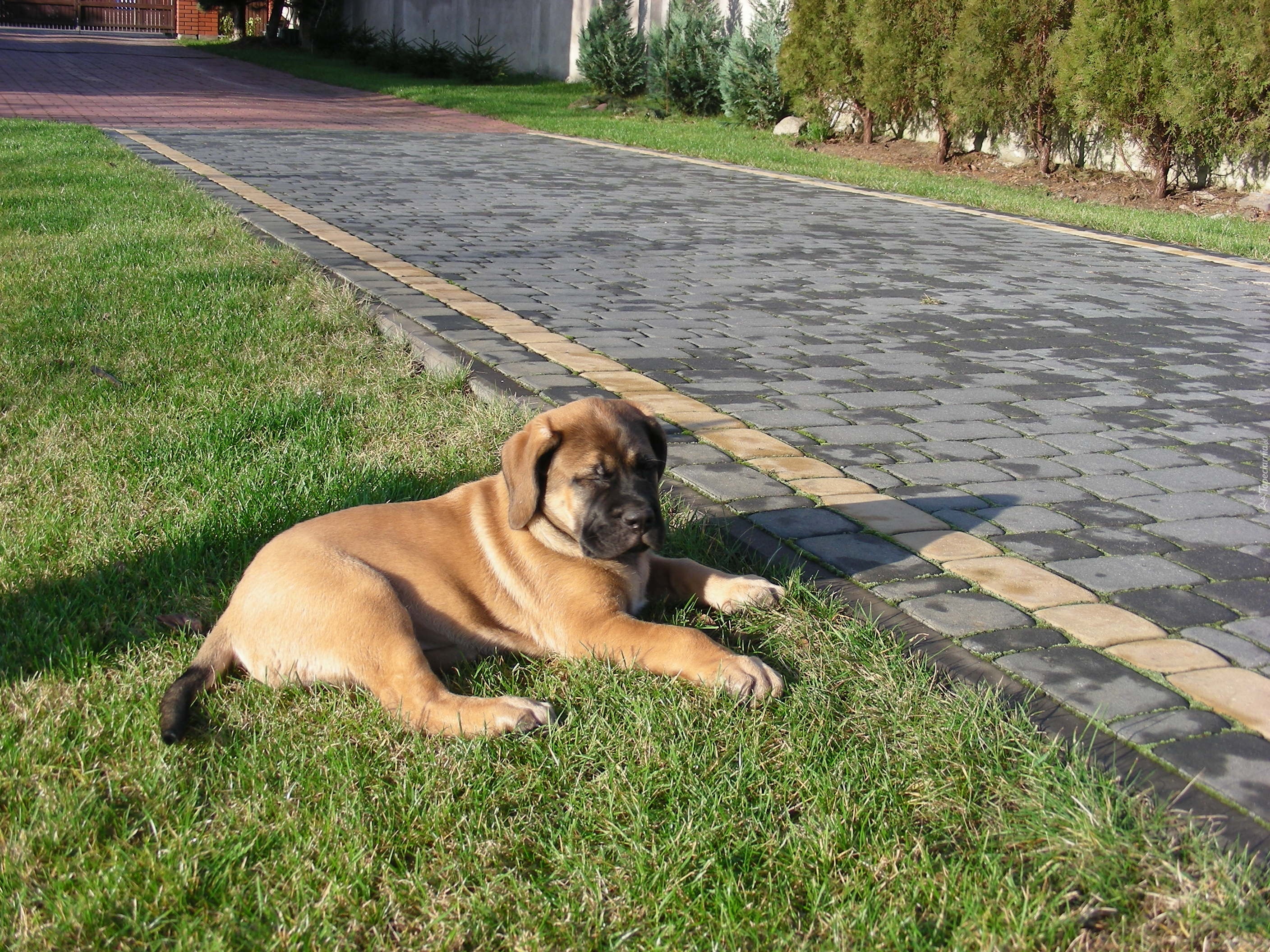 Edytor tapety: słodki, szczeniak, Mastif angielski, kostka, brukowa