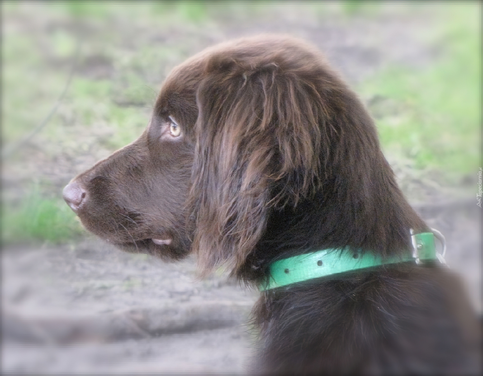 Edytor tapety: Wyżeł niemiecki długowłosy, zielona, obroża