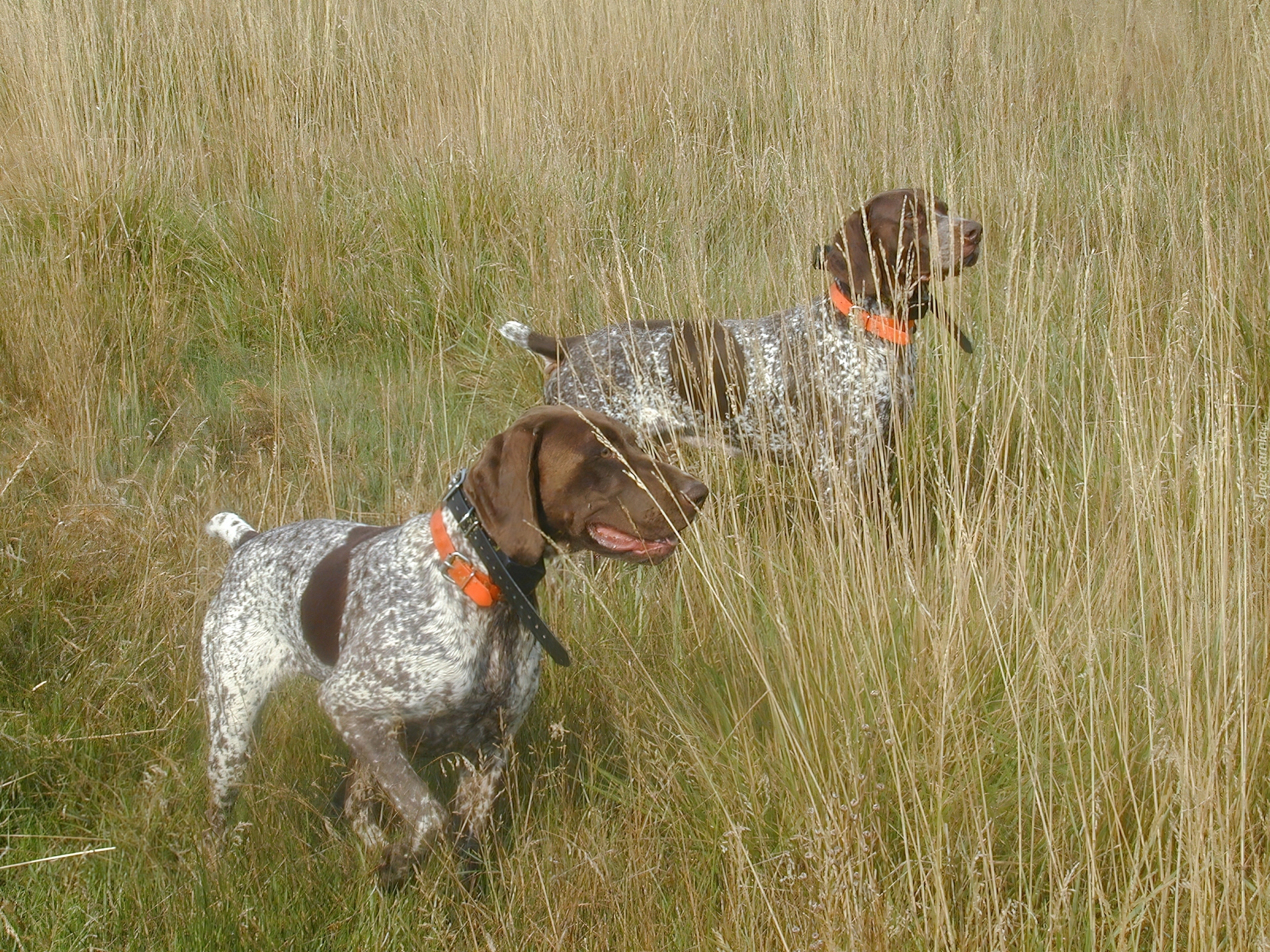 Edytor tapety: Dwa, Wyżły niemieckie krótkowłose, pomarańczowe, obroże