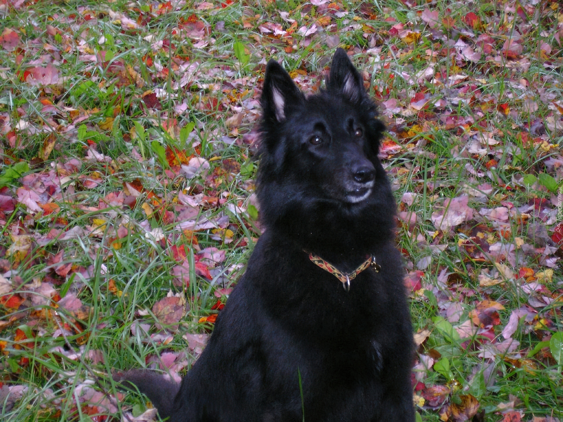 Edytor tapety: Owczarek belgijski Groenendael, kolorowe, liście