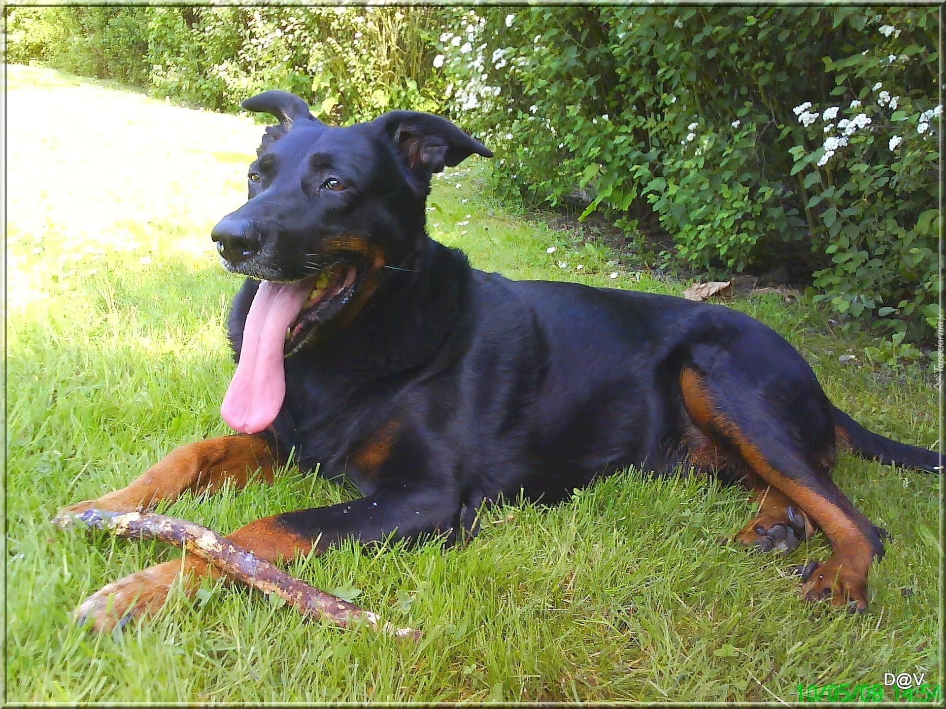 Edytor tapety: Owczarek francuski Beauceron, jęzor, kij