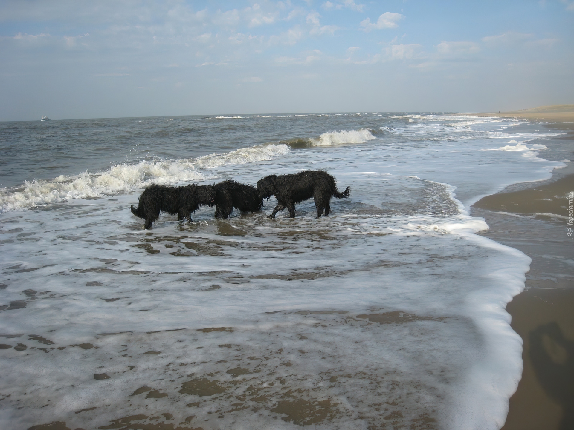 Edytor tapety: Trzy, czarne, Owczarki francuskie Briard, fale