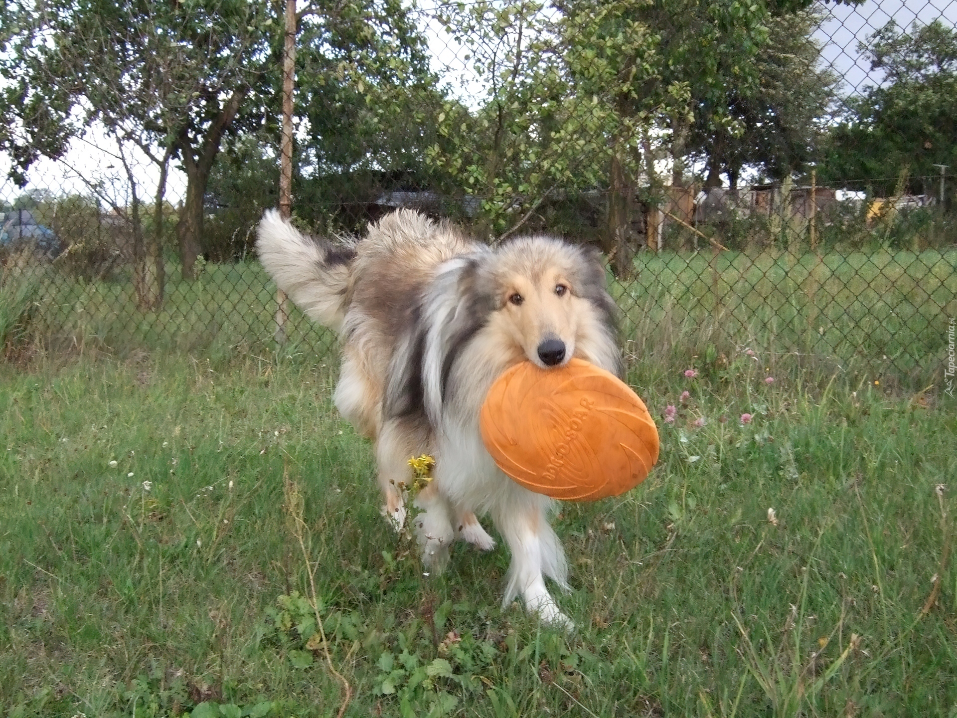 Edytor tapety: Owczarek szkocki długowłosy, frizbee