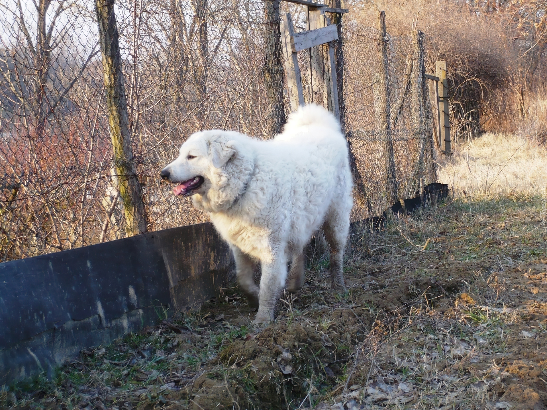 Edytor tapety: Owczarek węgierski Kuvasz, płot