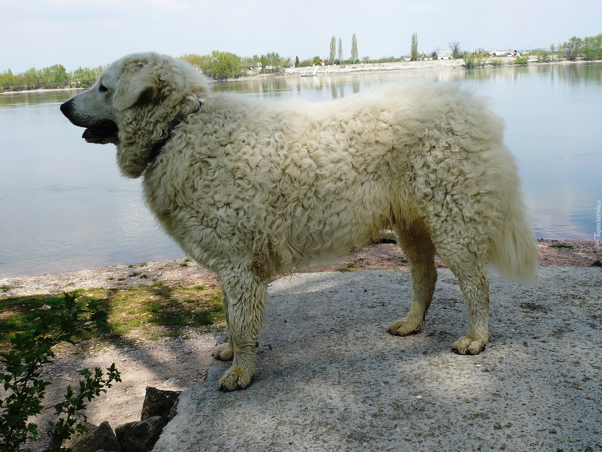 Edytor tapety: Owczarek węgierski Kuvasz, woda