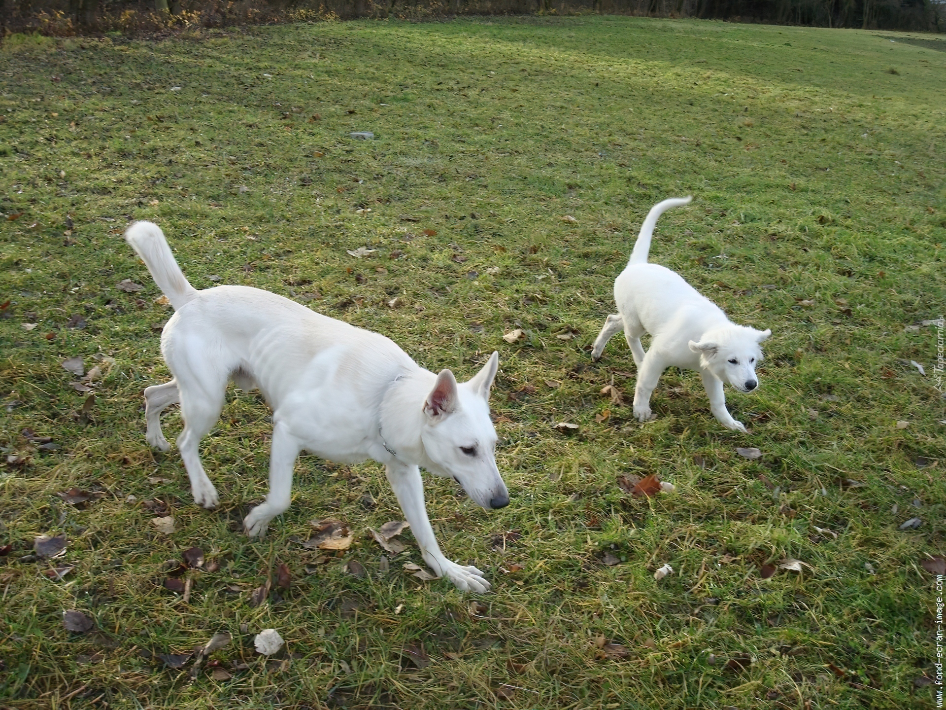 Edytor tapety: Dwa, Owczarki amerykańsko-kanadyjskie, zielona, trawa