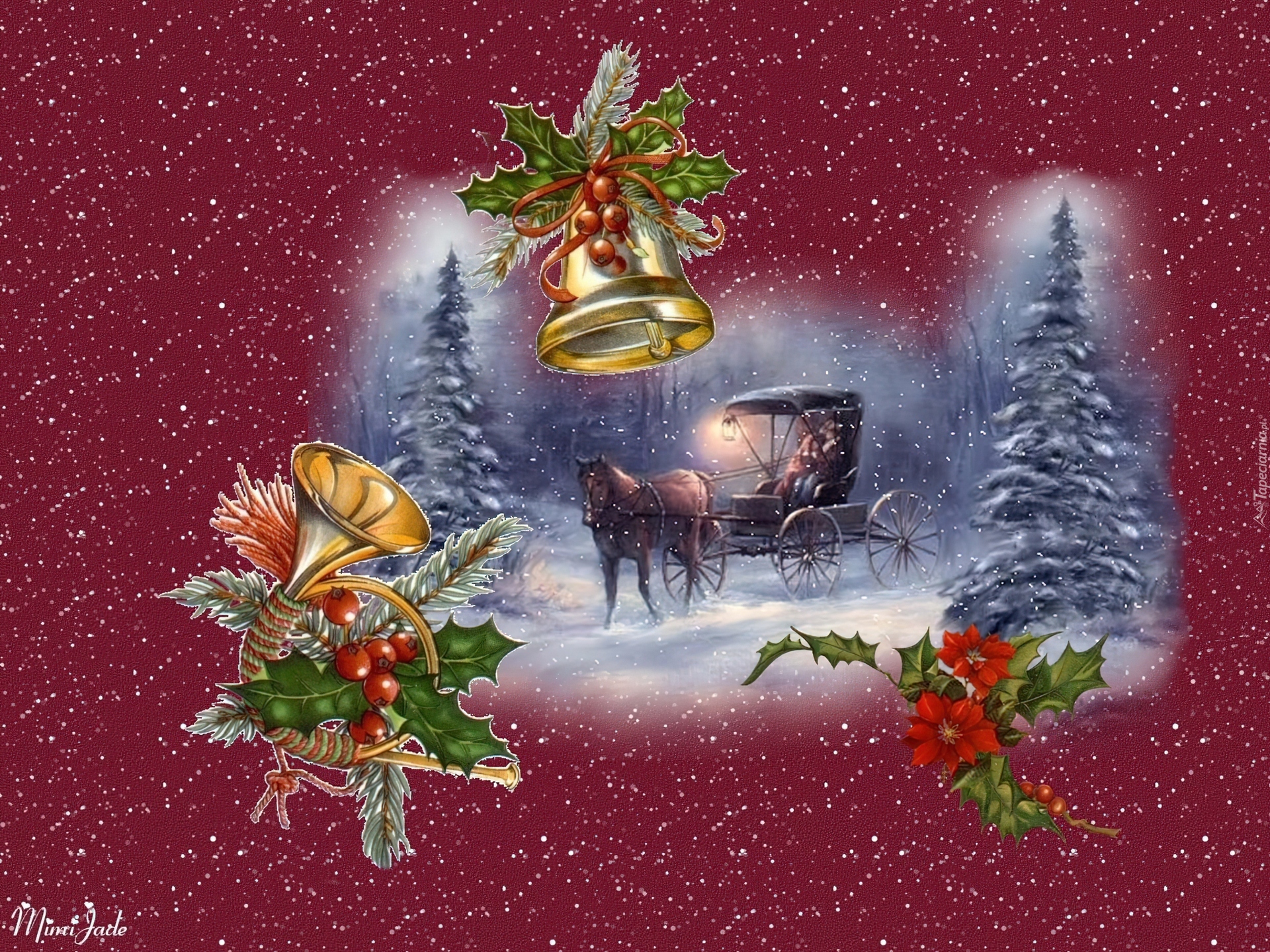 Edytor tapety: dzwonki, koń, dorożka, choinka