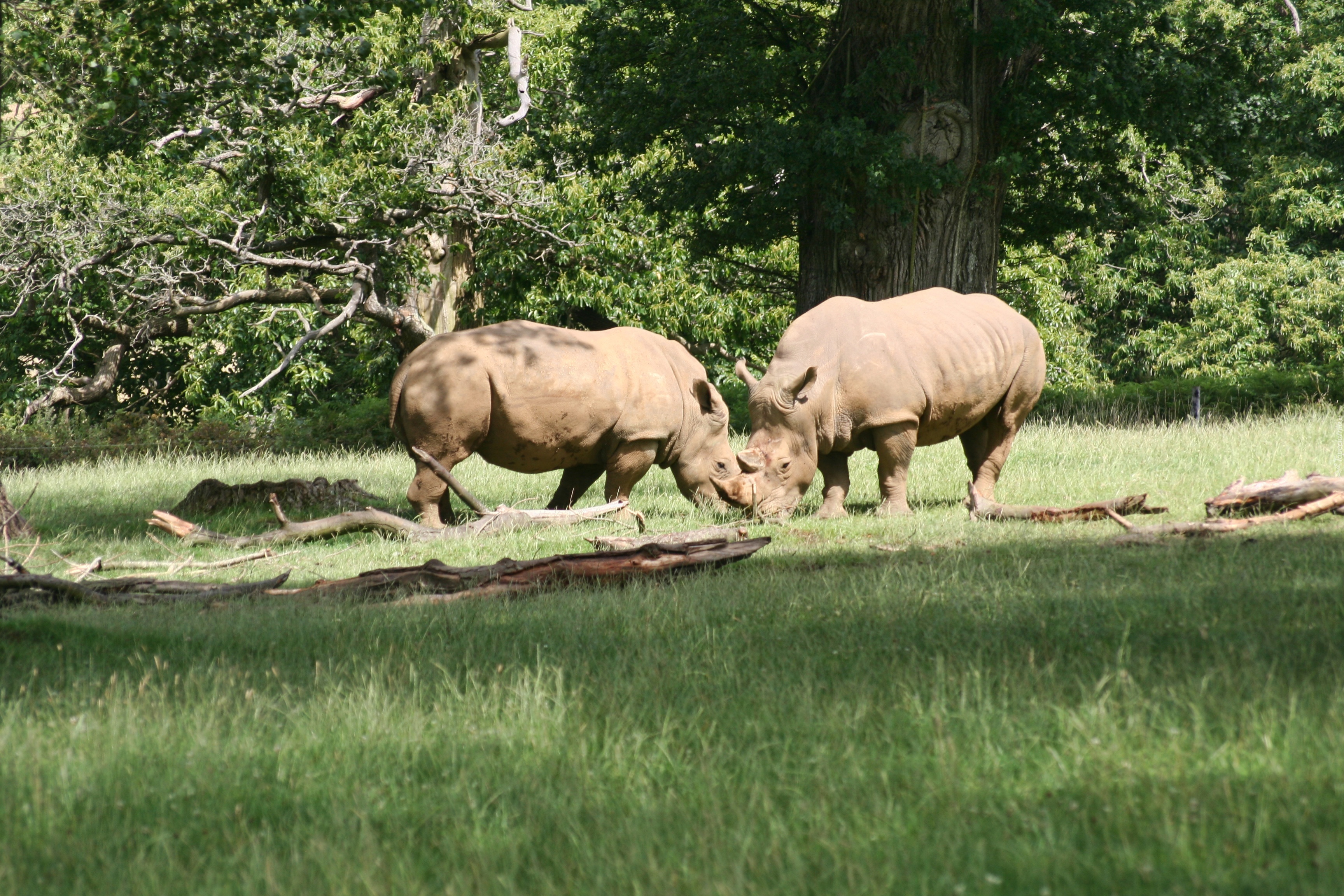 Edytor tapety: Dwa, Nosorożce, trawa